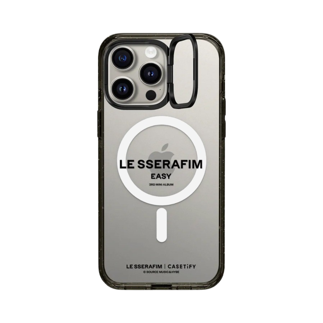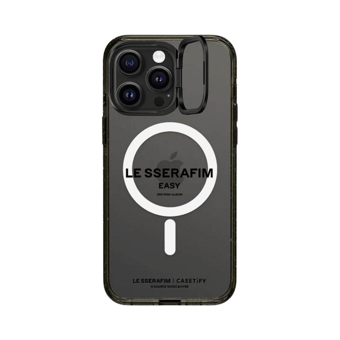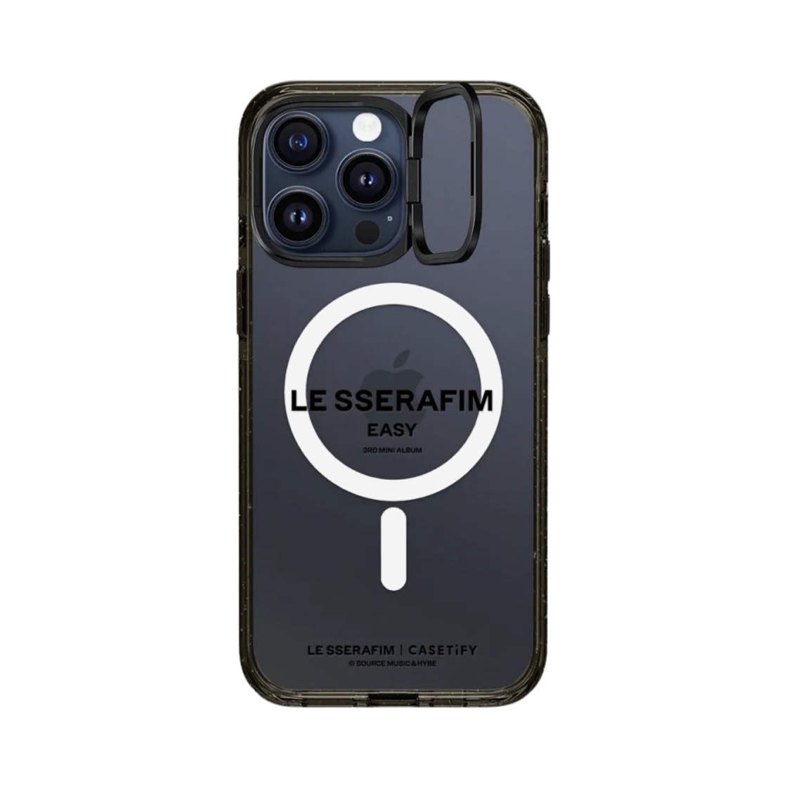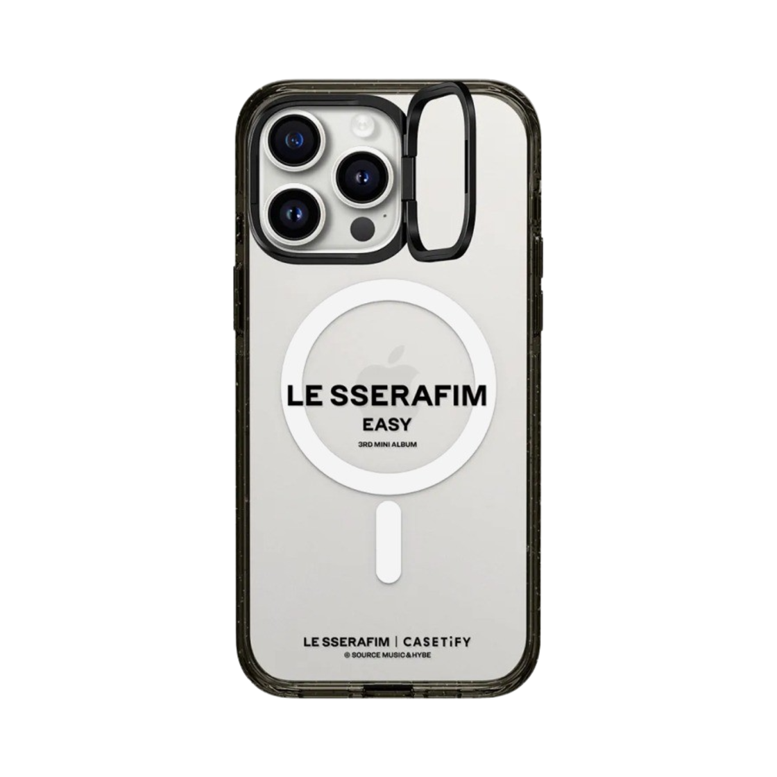 Casetify x LE SSERAFIM iPhone EASY Title MagSafe Impact Ring Stand Case Clear Black