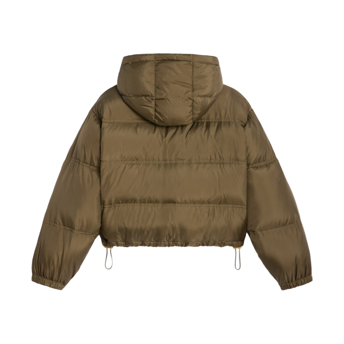 (W) Celine Cropped Triomphe Down Jacket in Lightweight Nylon Kaki