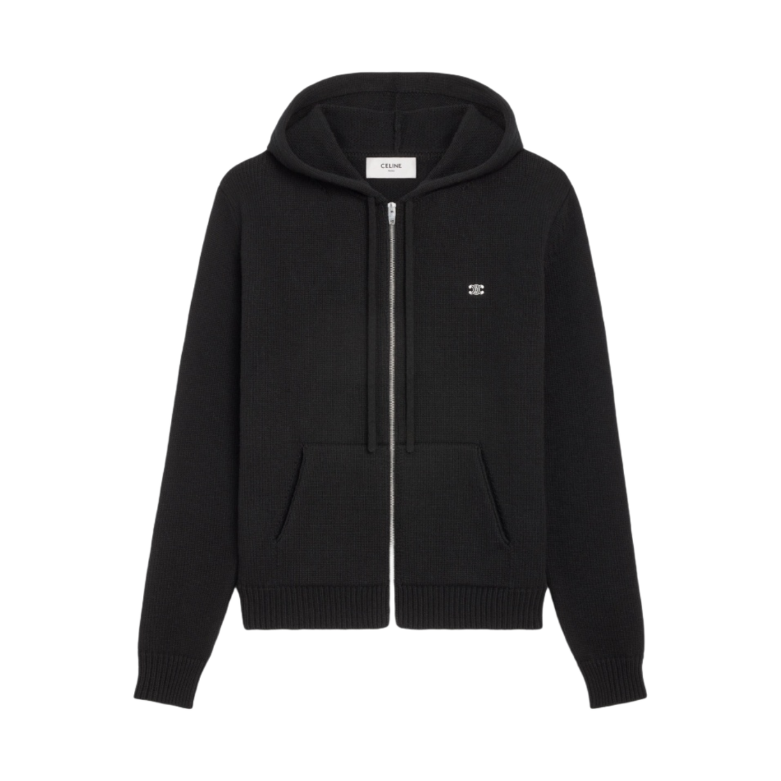 Celine Triomphe Hooded Sweater in Wool Cashmere Black Off White