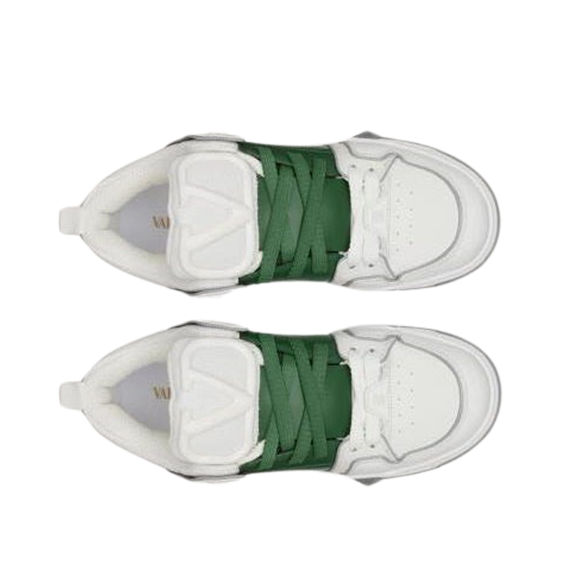 Valentino Open Skate Calfskin & Fabric Sneakers White Green