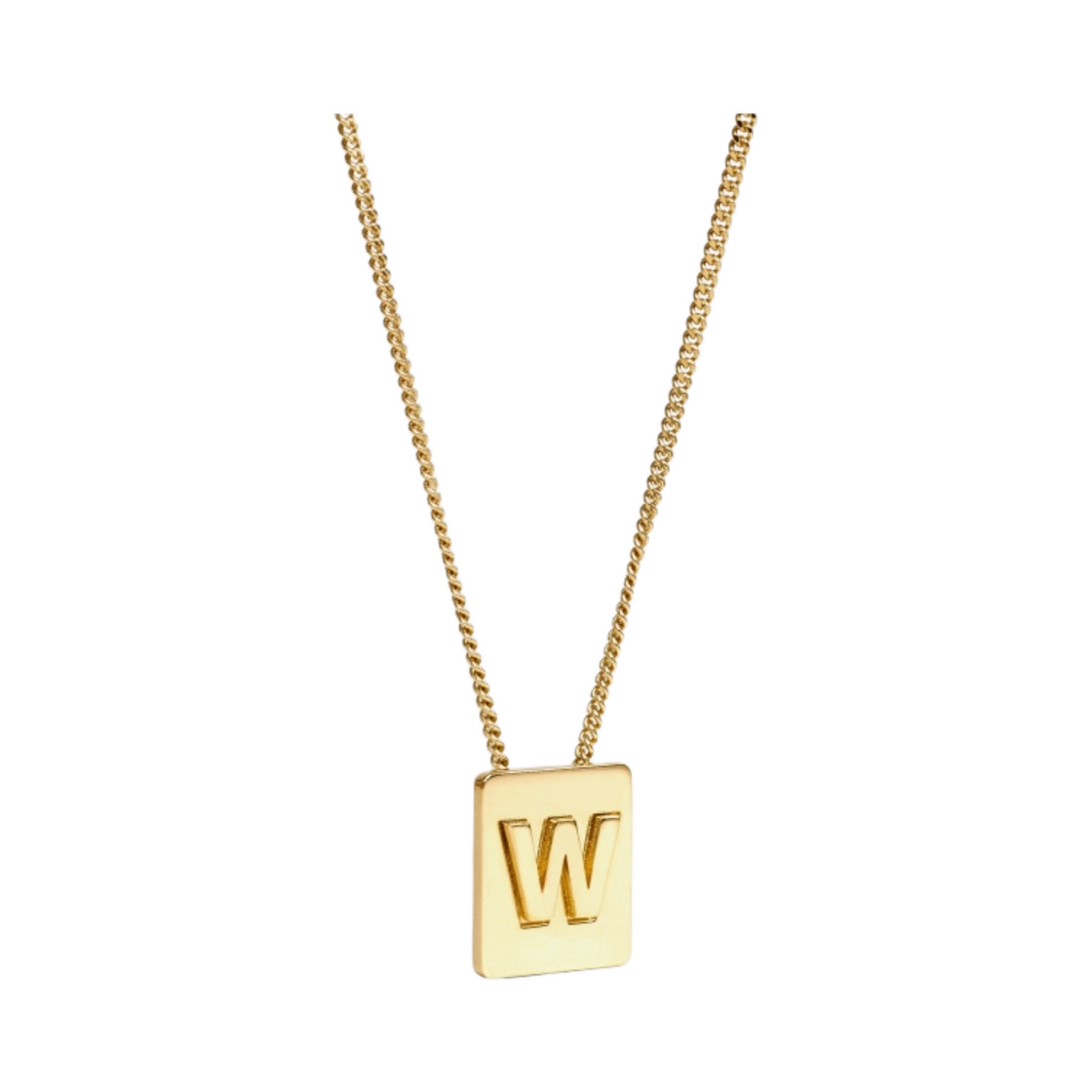 (W) Celine Alphabet W Necklace in Brass with Gold Finish Gold