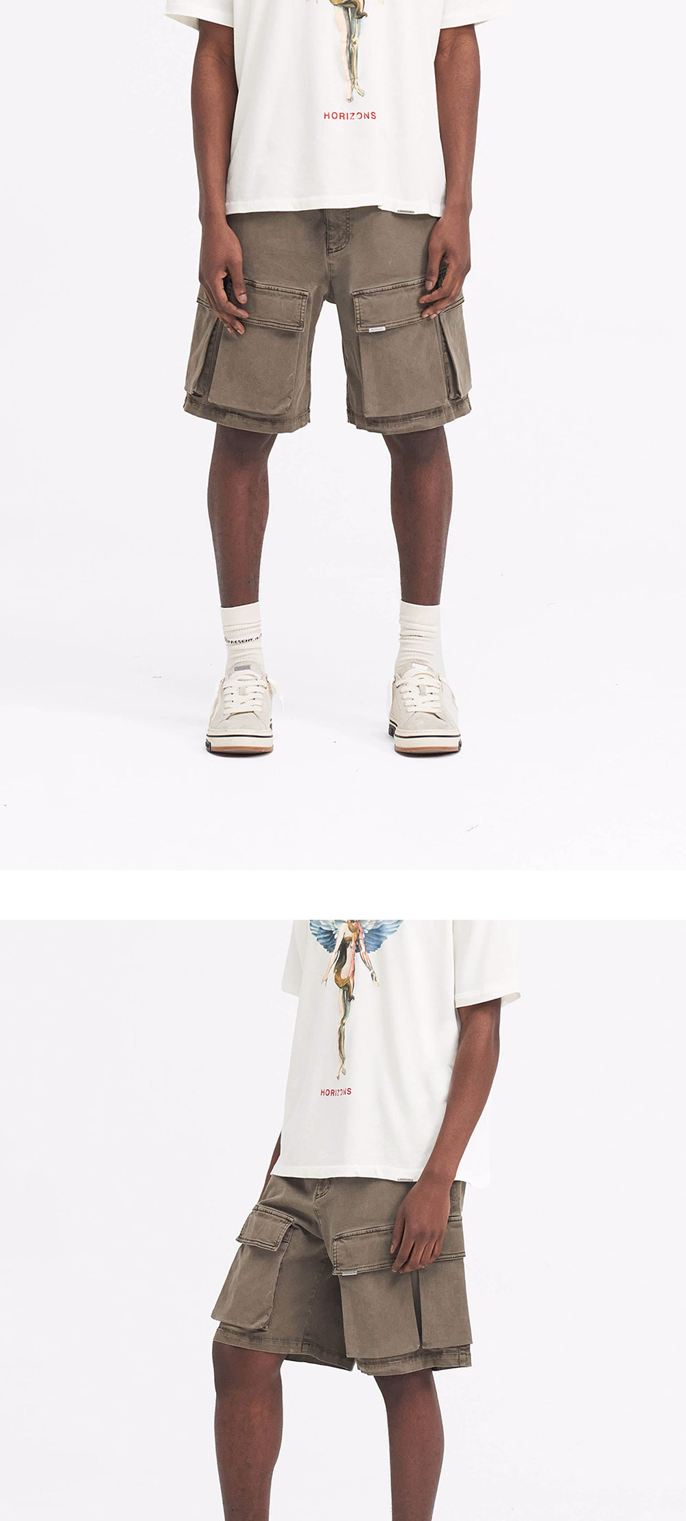 매우 부드러운 촉감과 강력한 페이드 아웃 워싱으로 제작된 배기 핏의 카고 쇼츠를 소개합니다. 뒷면의 V 요크, Represent 로고 메탈 바가 달린 오버사이즈 3D 포켓, 스프레이 염색과 앤틱 실버 벨트 루프 바가 특징입니다.