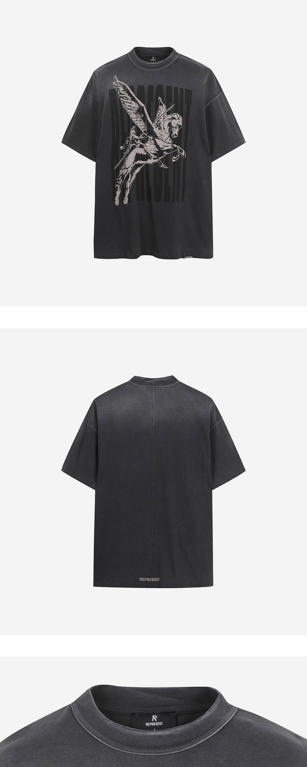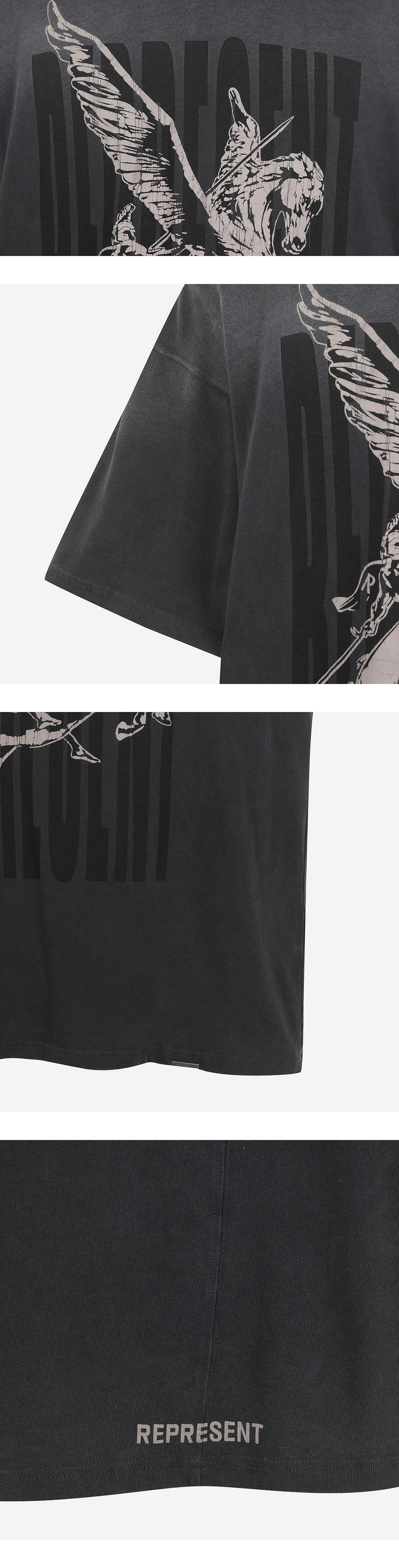 고급스러운 미디움 웨이트 면 소재로 제작된 오버사이즈 핏의 티셔츠를 소개합니다. 앞면의 빈티지 Macot 그래픽과후면 하단의 Represent 로고 그래픽이 포인트입니다.