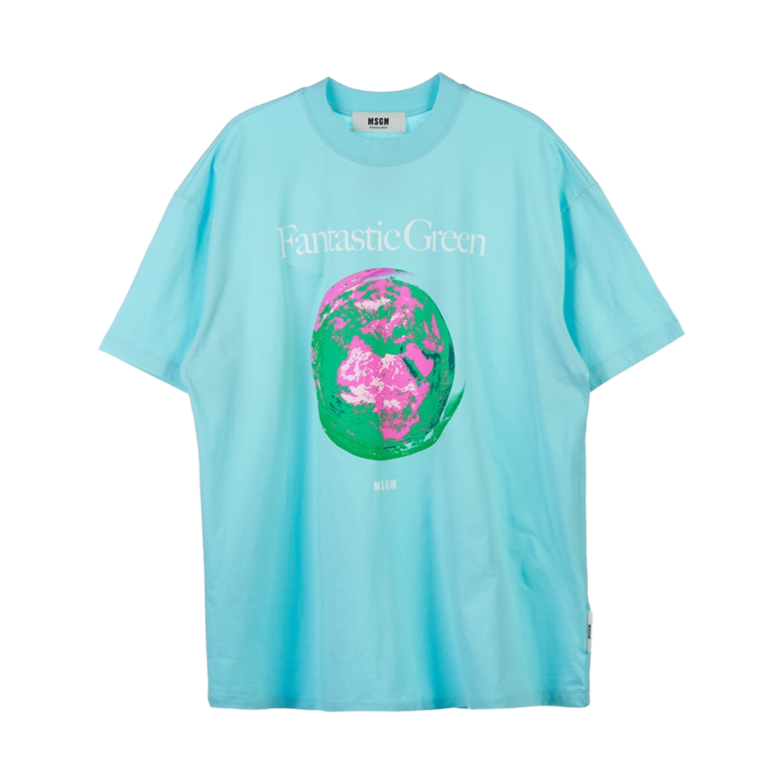 엠에스지엠 판타스틱 그린 서스테이너블 코튼 티셔츠 라이트 블루
