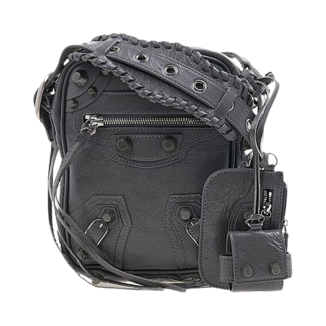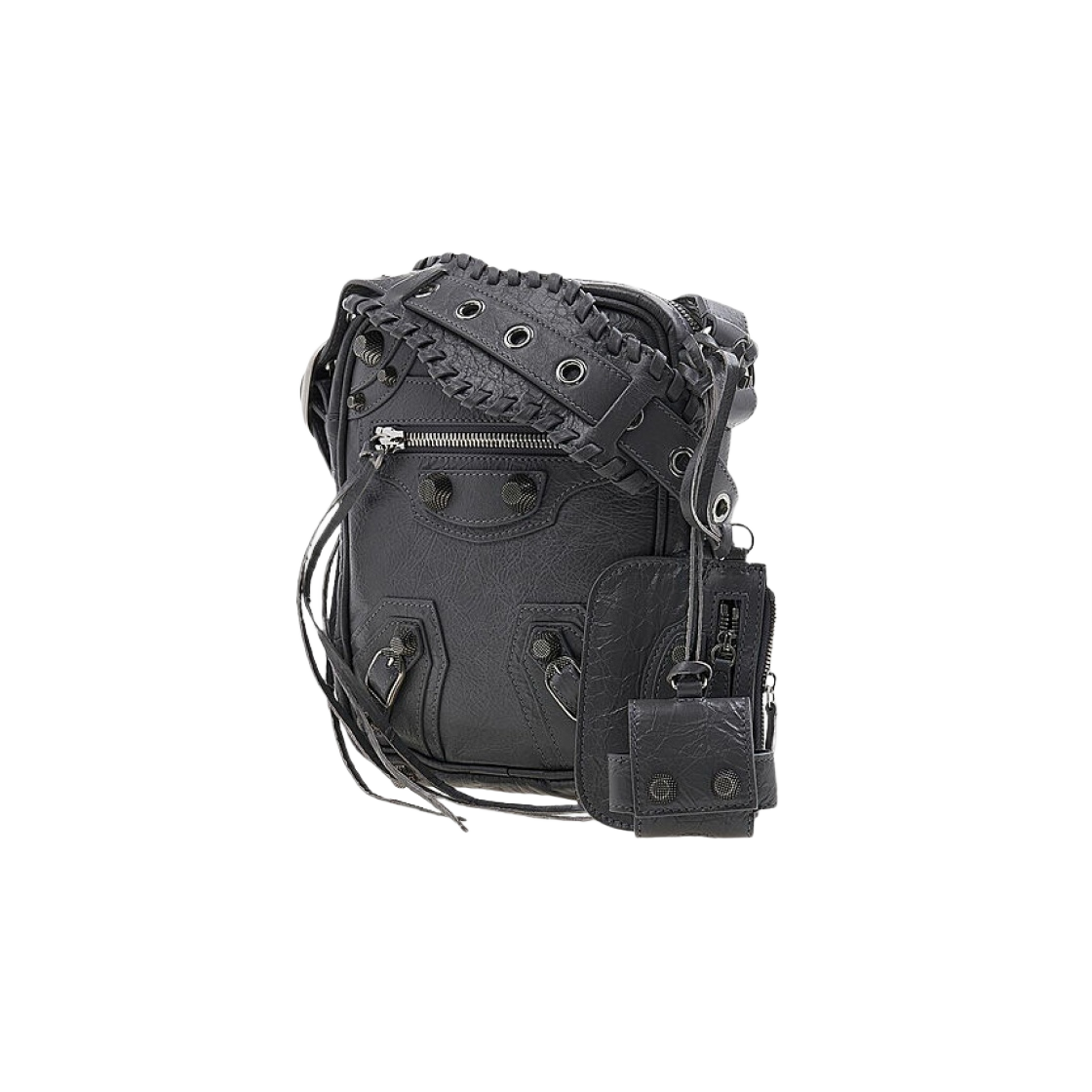 Balenciaga Le Cagole Men Crossbody Bag in Arena Lambskin Dark Grey