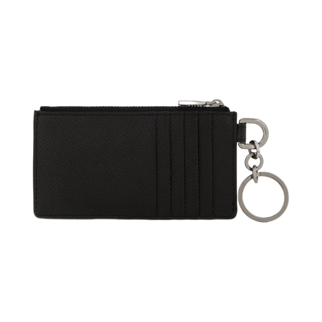 Dolce & Gabbana Calfskin Card Holder with Ring and Logo Tag Black