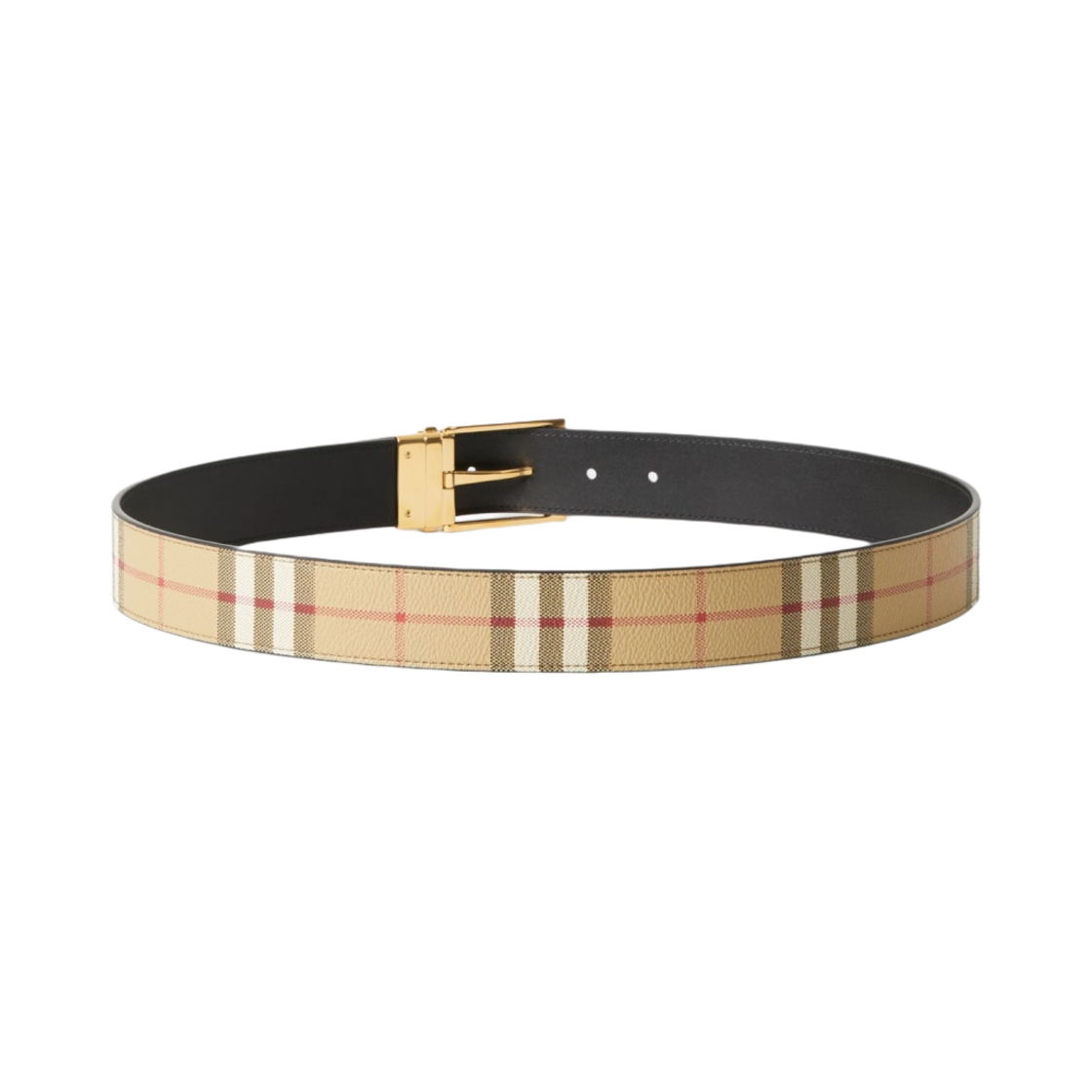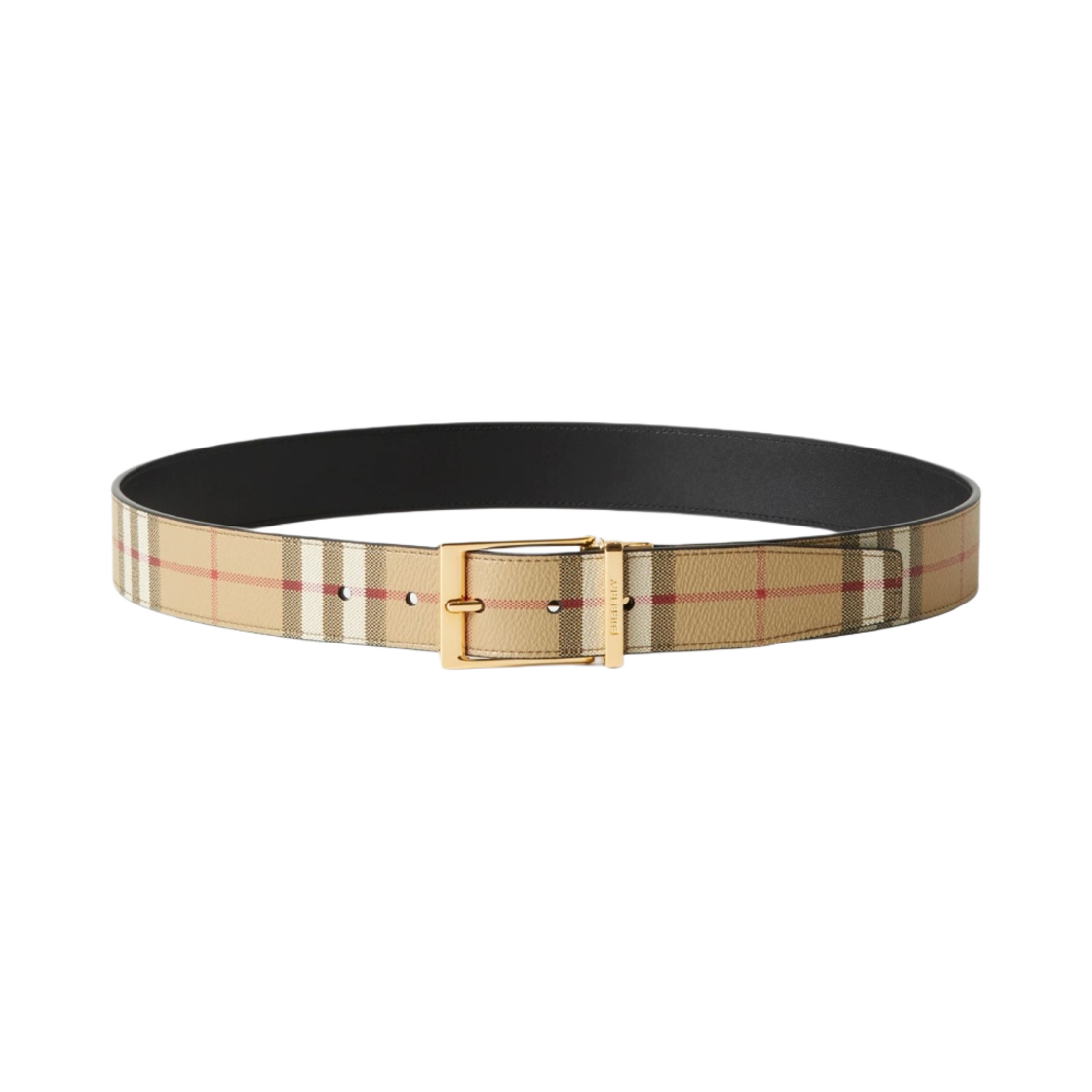 버버리 체크 앤 레더 리버시블 벨트 아카이브 베이지 골드