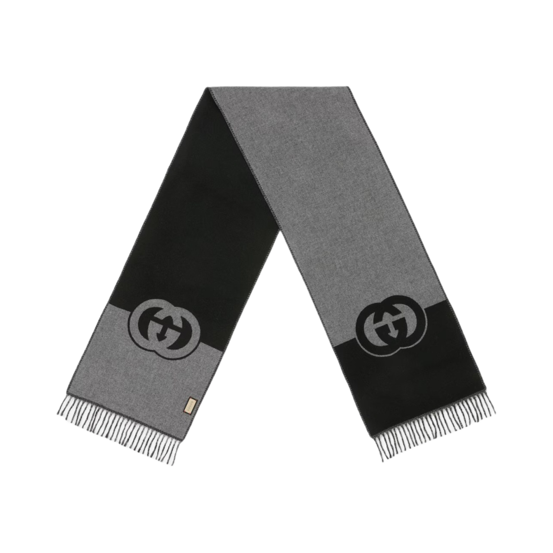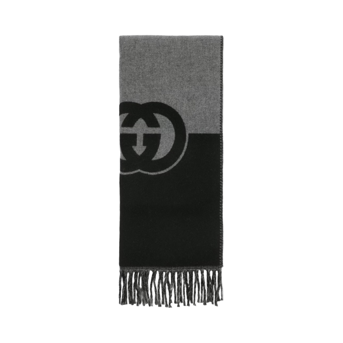 구찌 울 캐시미어 머플러 인터로킹 G 블랙 라이트 그레이