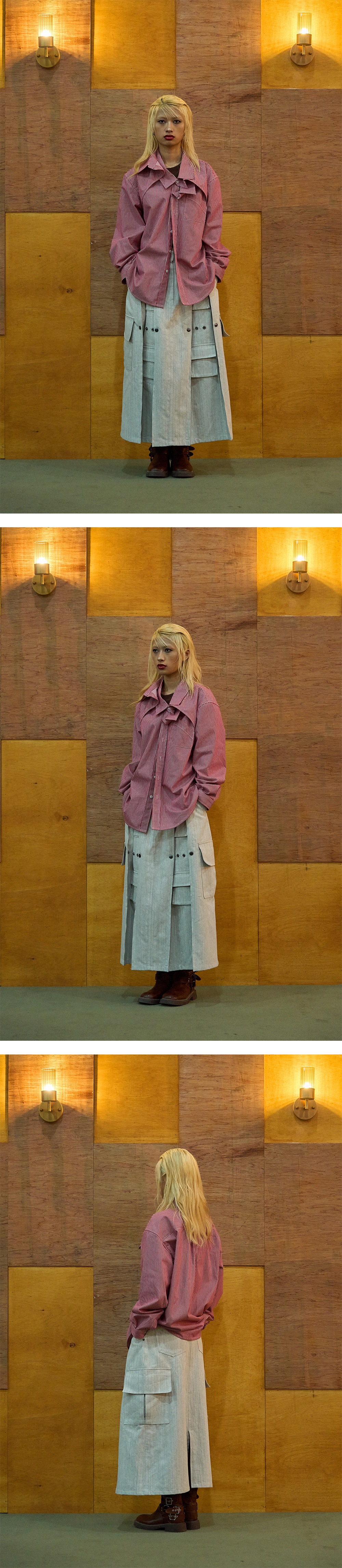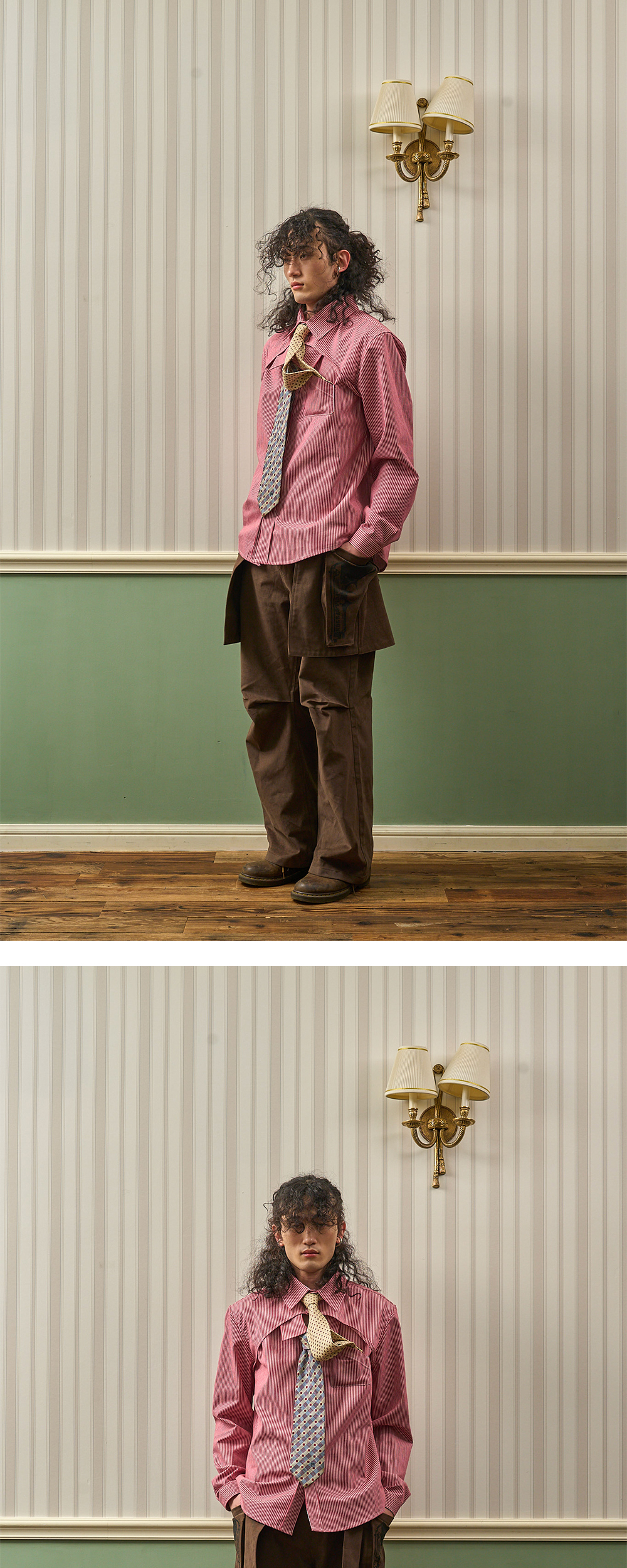 - 해당 상품은 주문 제작 상품으로 영업일 기준 5~7 일 이후 출고됩니다. - 제품 색상은 모델컷이 아닌 제품컷의 색상이 실제 색상과 더 가깝습니다. - 더블 카라 디테일의 셔츠 - 두 카라 모두 넥타이 가능함