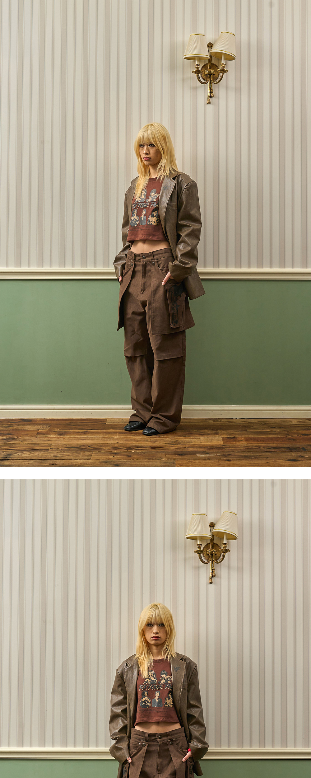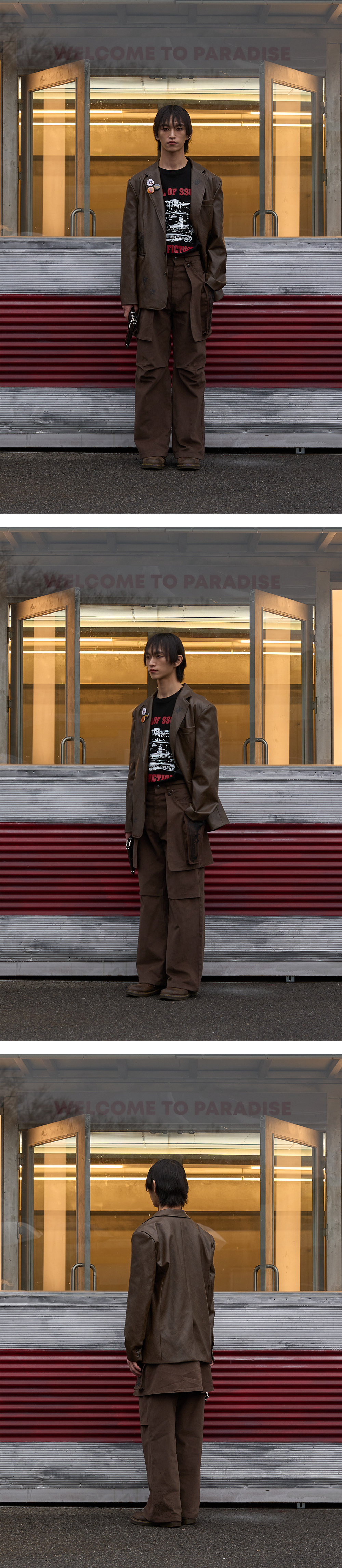 풀오브썬 건 프린팅 레더 블레이저 브라운