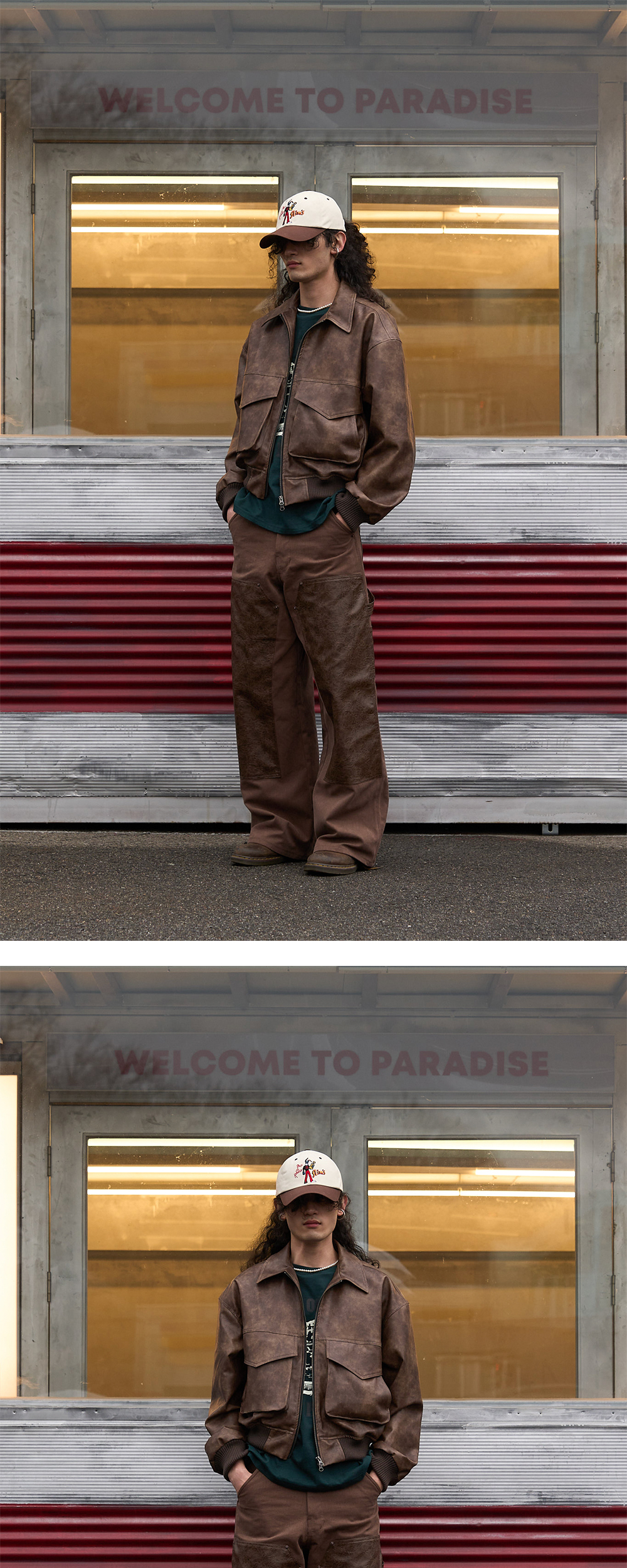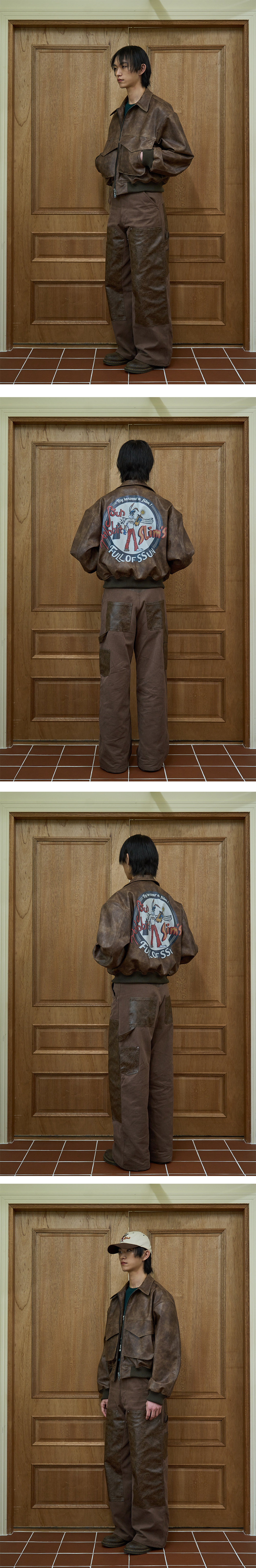 풀오브썬 레더 패치 워크 팬츠 브라운