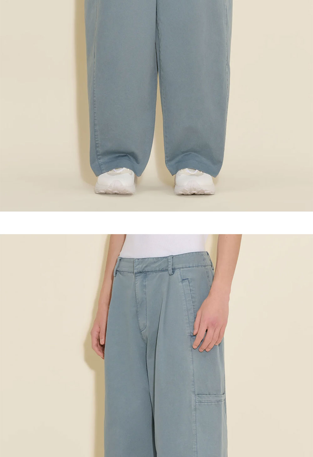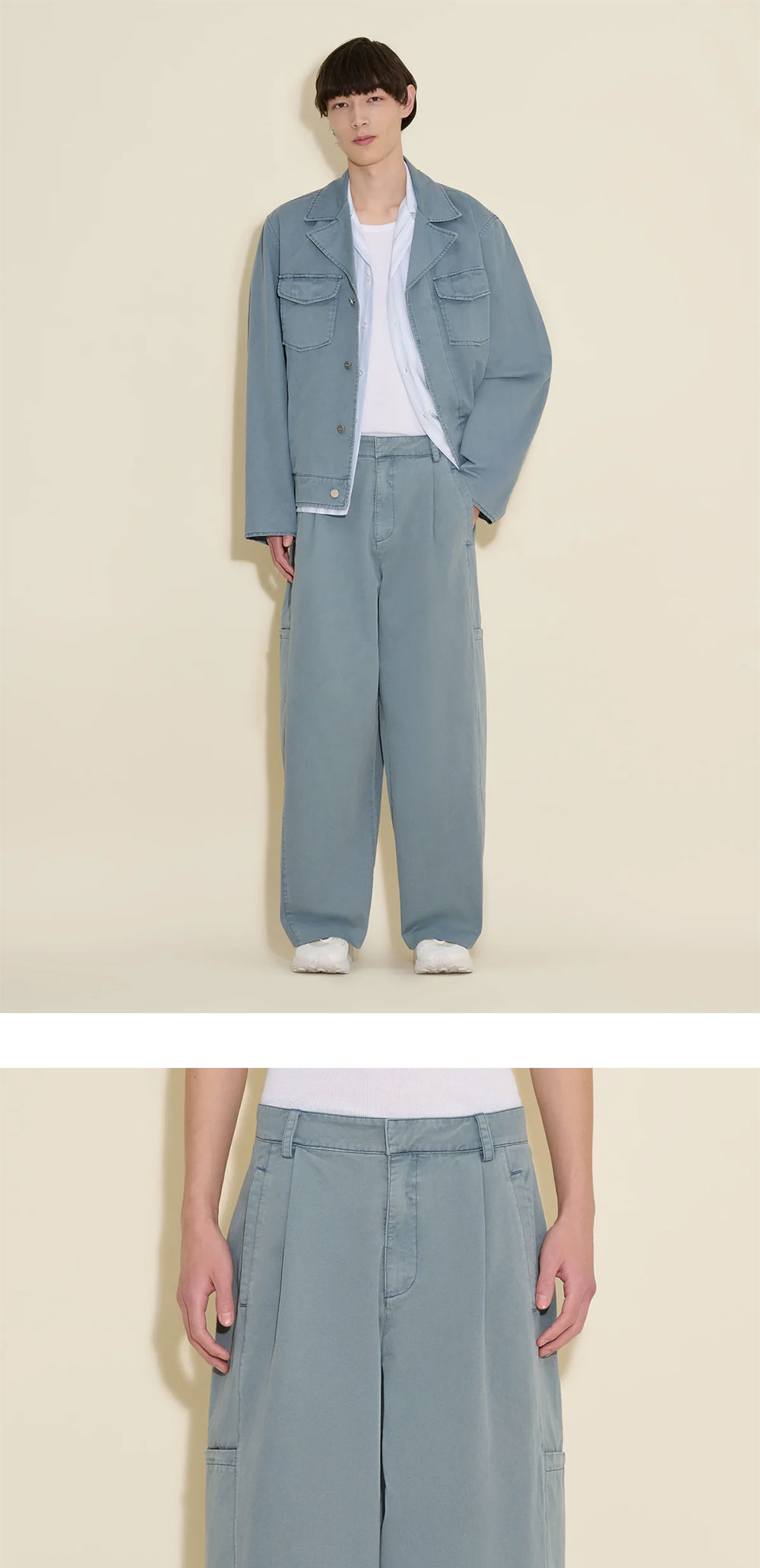 테이퍼드 핏의 테비 트라우저는 와이드 핏으로 편안한 착용감을 제공합니다. 순면 소재로 제작되었으며, 콘실 지퍼 여밈이 잇는 넉넉한 사이드 포켓이 특징입니다. - 릴랙스드 핏 - 와이드 레그 - 백 포켓 * 모델은 188cm이며 48 사이즈를 착용하였습니다.