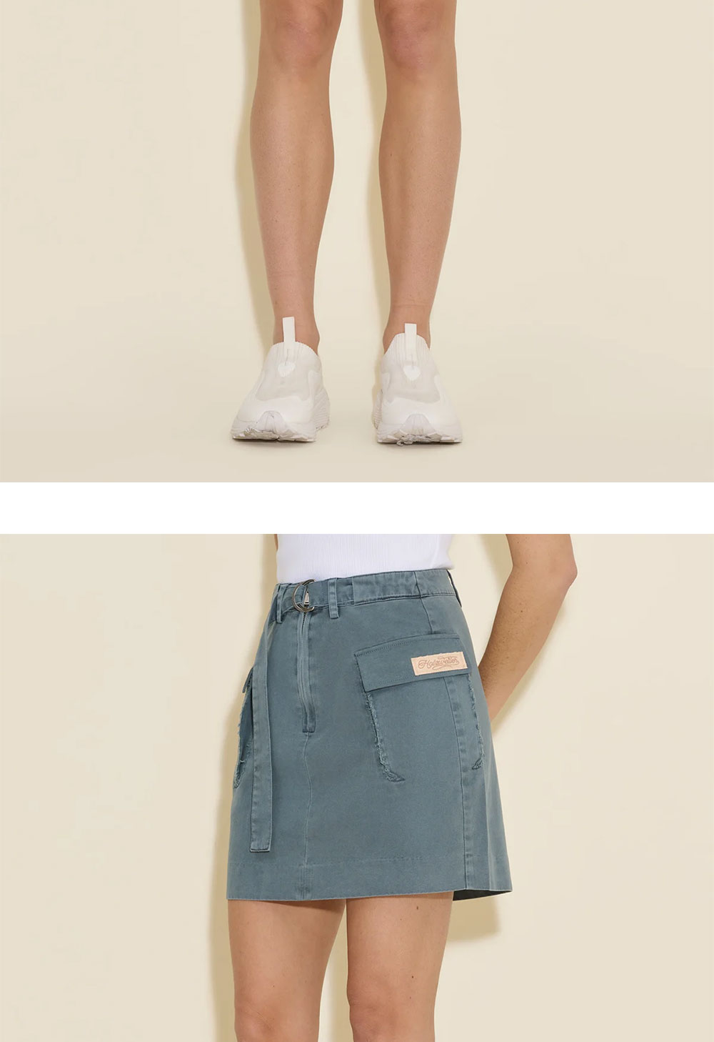 내구성이 뛰어난 코튼 캔버스 소재와 벨트 디자인으로 우아함과 기능성을 모두 갖춘 스커트입니다. A라인 실루엣으로 넉넉한 포켓을 갖추고 있습니다. - 레귤러 핏 - 벨티드 스커트 - A라인 실루엣 - 플랩 포켓 * 모델은 175cm이며 XS 사이즈를 착용하였습니다.