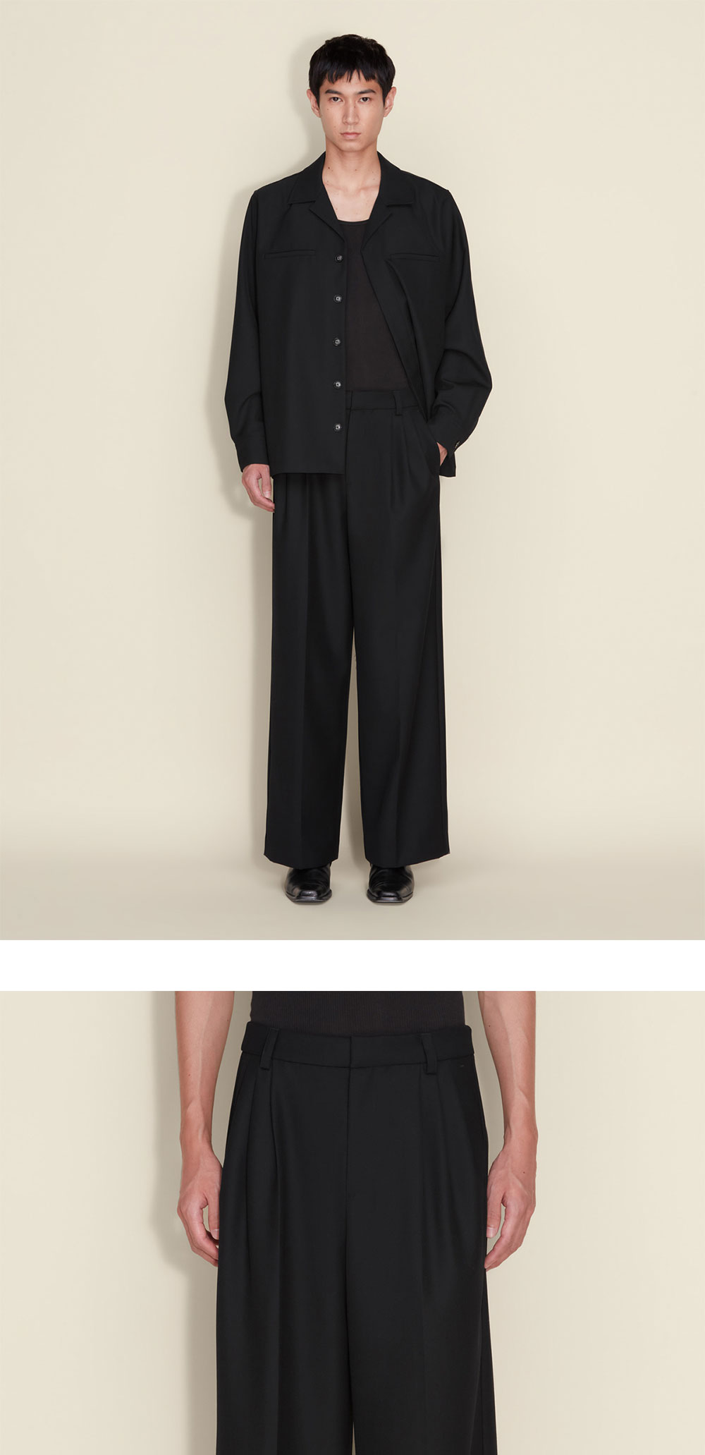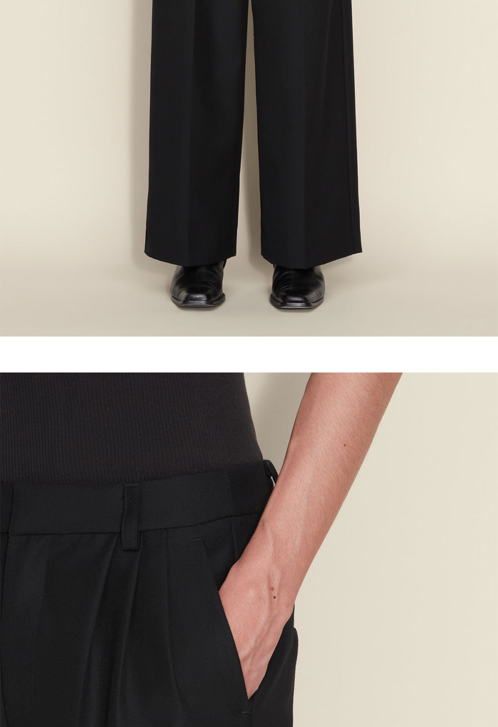 하이 웨이스트의 란 플리츠 트라우저는 와이드 실루엣과 플리츠 디테일이 특징입니다. 양쪽 옆면 포켓과 뒷면 포켓이 있습니다. - 하이 웨이스트 - 와이드 레그 - 벨트 루프 - 플리츠 디테일 - 사이드 포켓 - 뒷주머니 * 모델은 188cm이며 48 사이즈를 착용하였습니다.