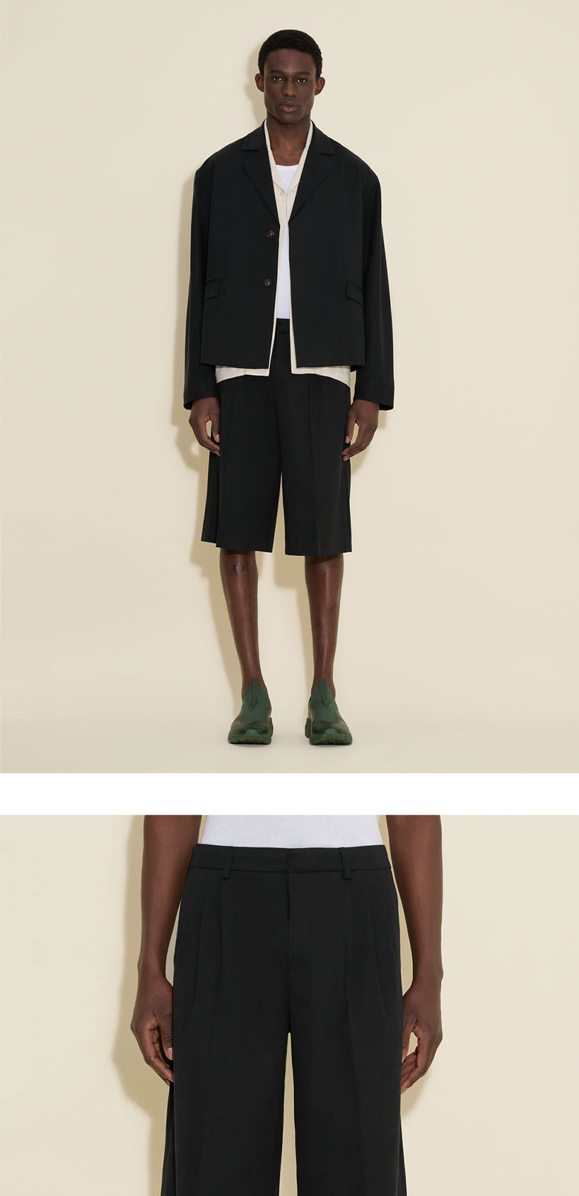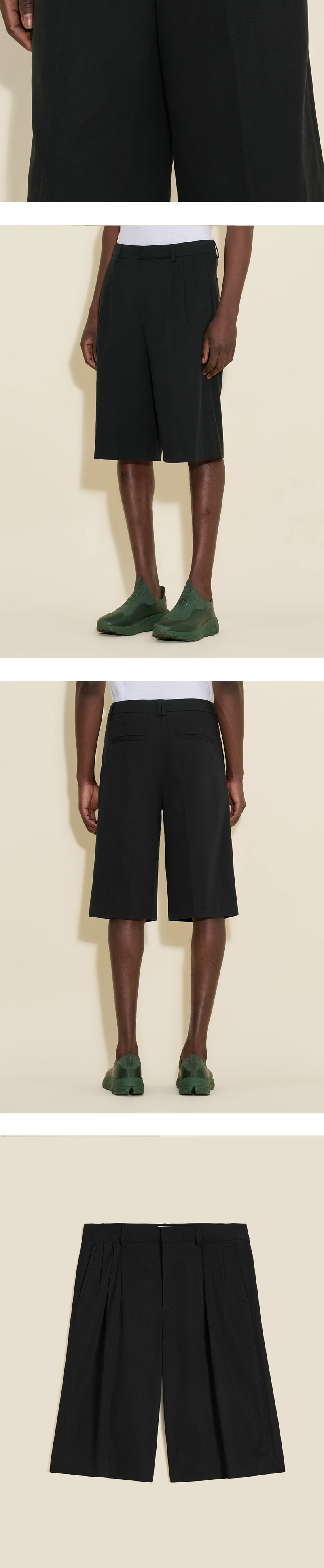 리노 플리츠 쇼츠는 클래식한 수트 스타일에서 영감을 받았습니다. 주름 디테일이 있는 와이드 실루엣과 벨트 루프, 엉덩이의 파이핑 포켓, 그리고 실용적인 측면 슬릿 포켓이 특징입니다. - 레귤러 핏 - 옆면 슬릿 포켓 - 와이드 레그 - 플리츠 디테일 * 모델은 189cm이며 48 사이즈를 착용하였습니다.