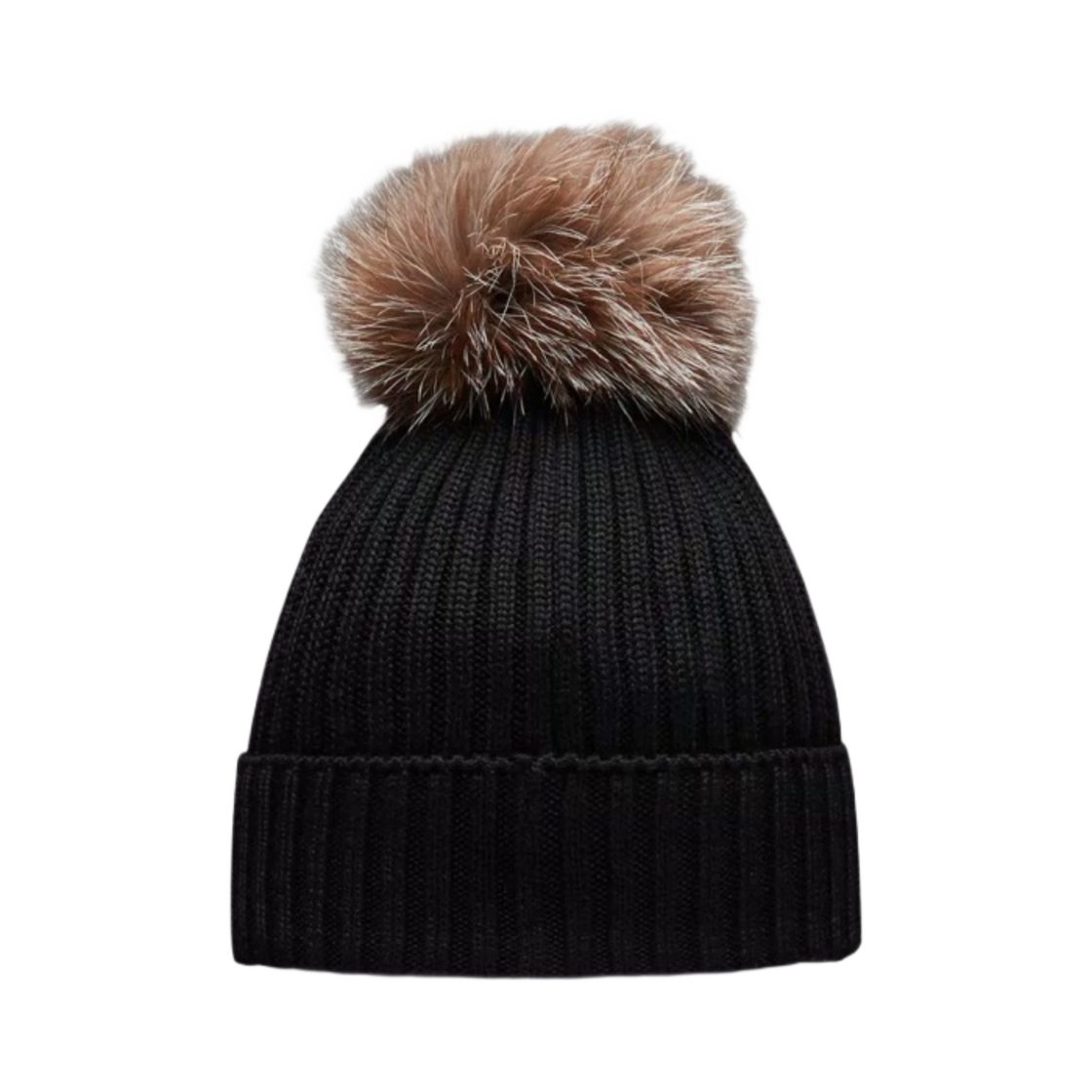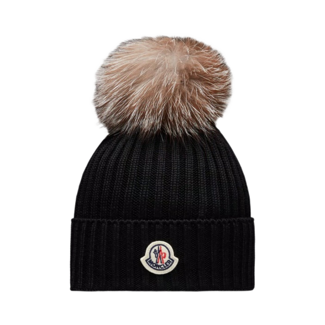 (Kids) Moncler Wool Beanie with Pom Pom Black - 23FW