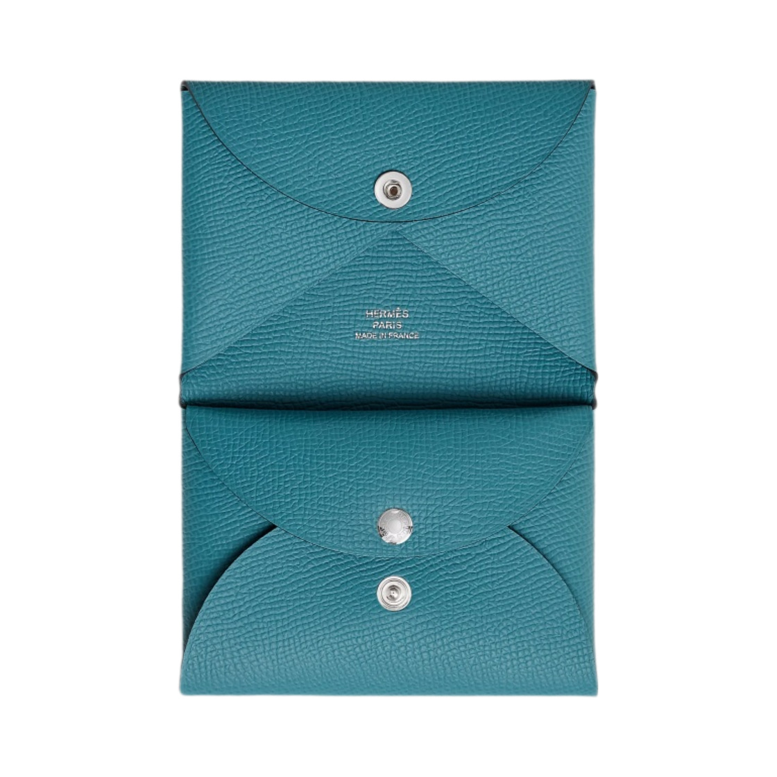 Hermes Calvi Duo Compact Card Holder Epsom & Palladium New Bleu Jean