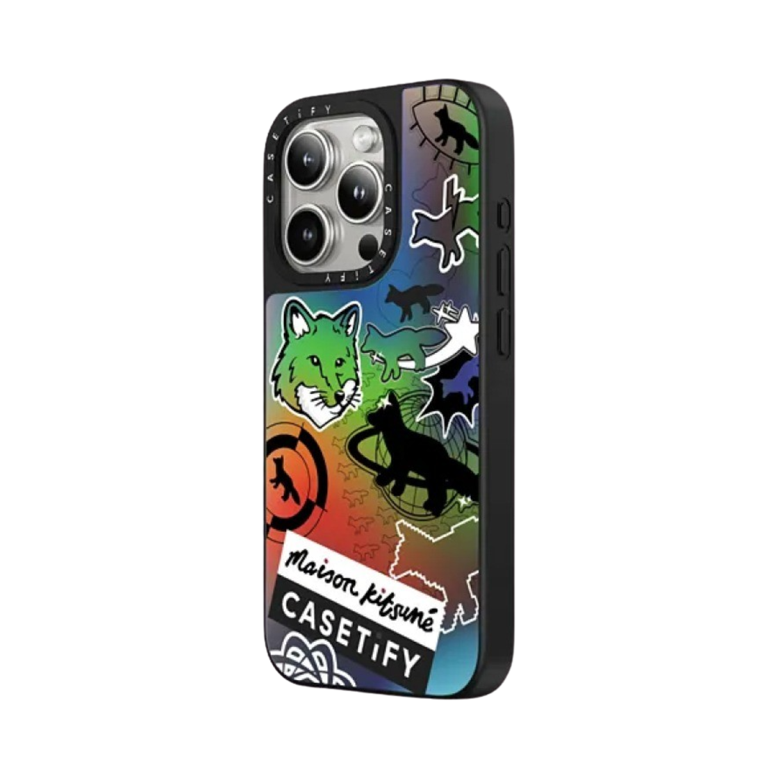 Casetify x Maison Kitsune iPhone Hologram Stickers Magsafe Case Aurora Black Bumper