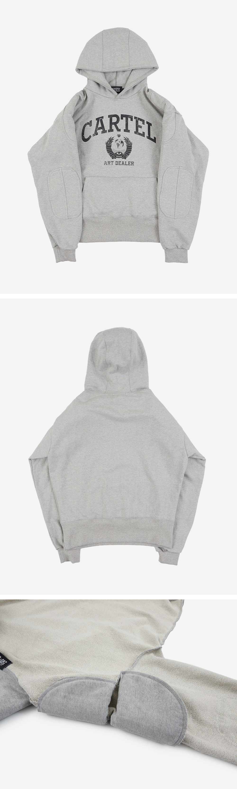 선데이오프클럽 카르텔 숄더 패디드 헤비 테리 후드 그레이