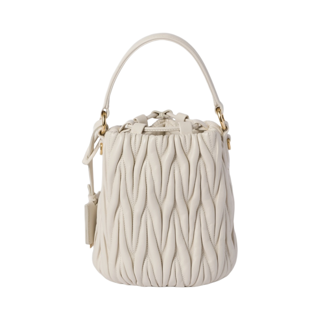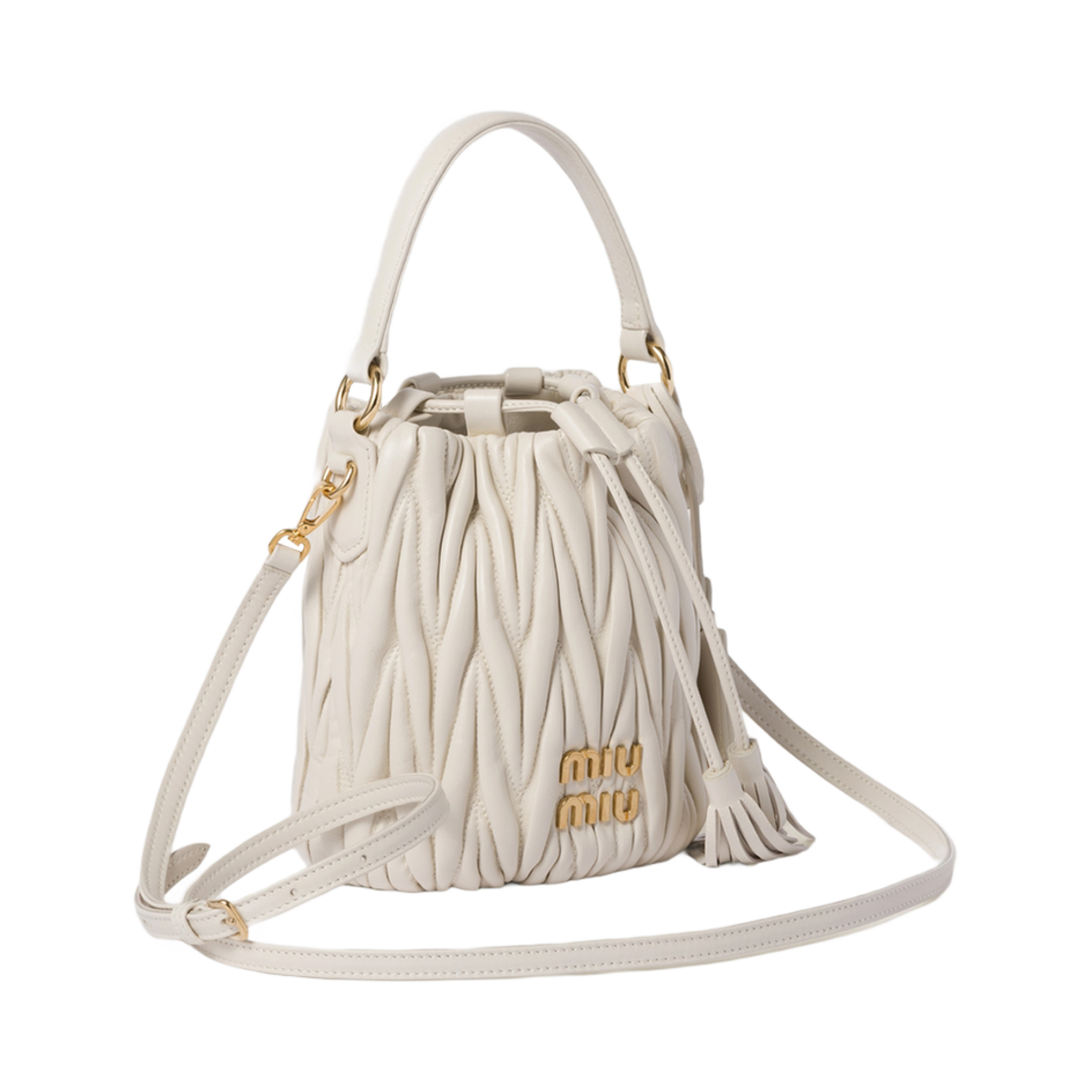 Miu Miu Matelasse Nappa Leather Bucket Bag White