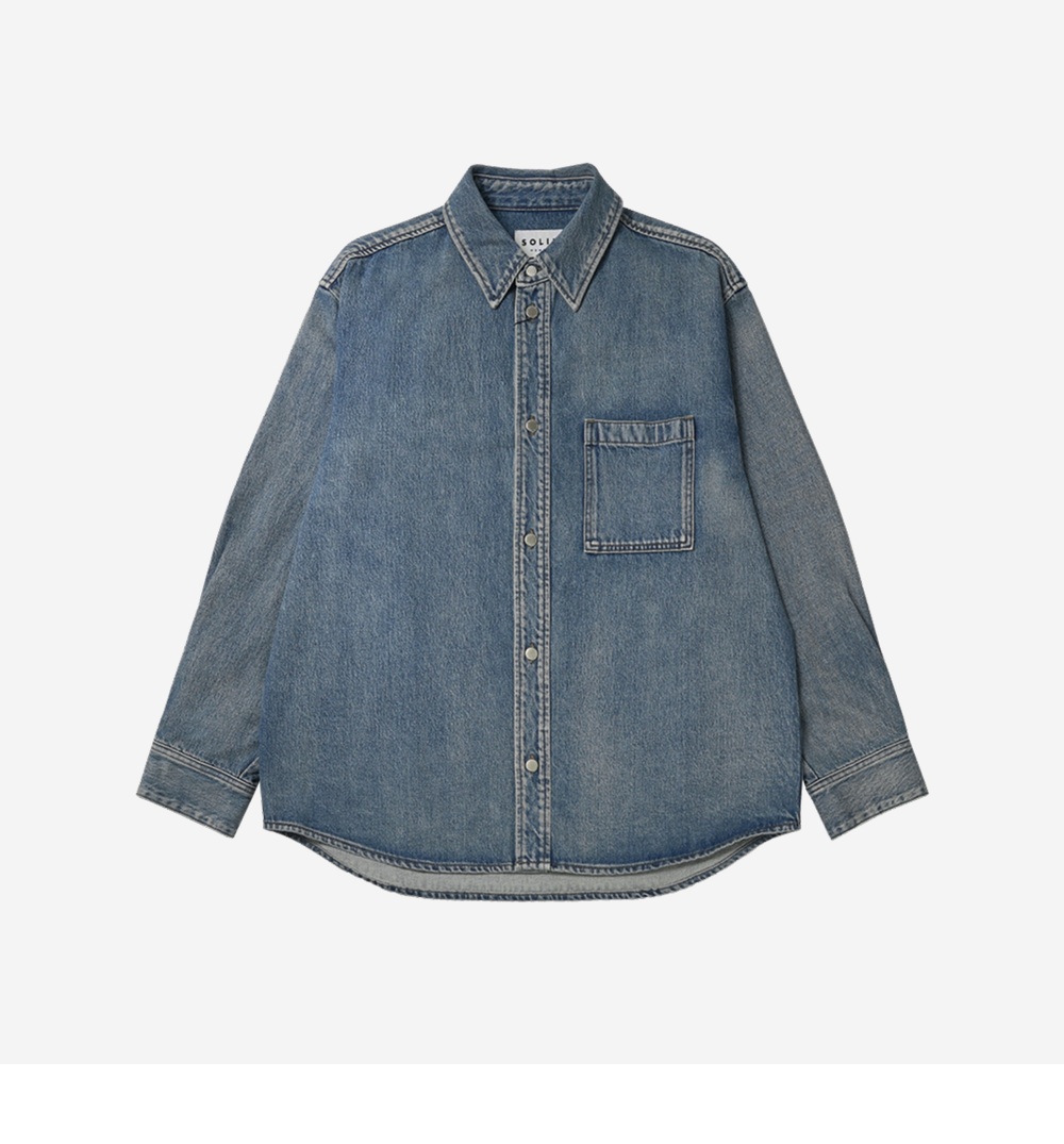 솔리드 옴므 블루 백로고 데님 셔츠 자켓 - 23FW