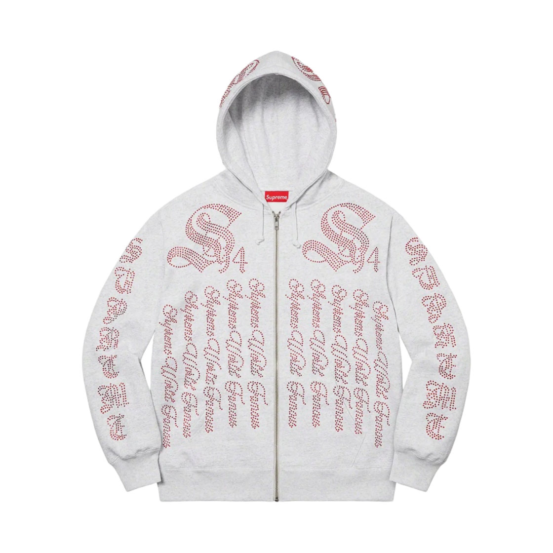 Supreme Rhinestone Zip Up Hooded Sweatshirt Ash Grey - 22SS