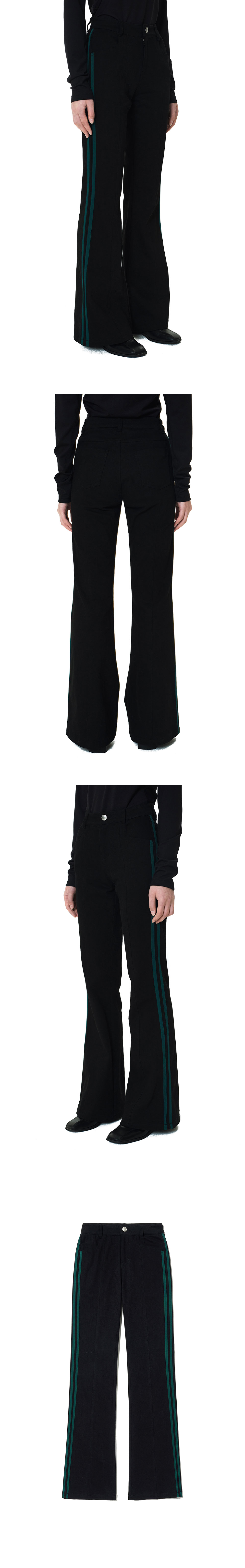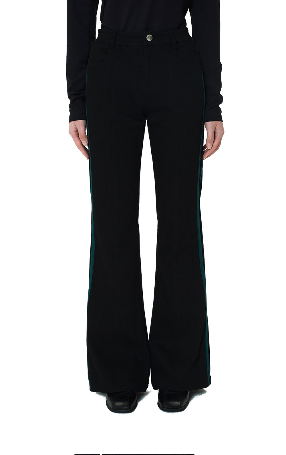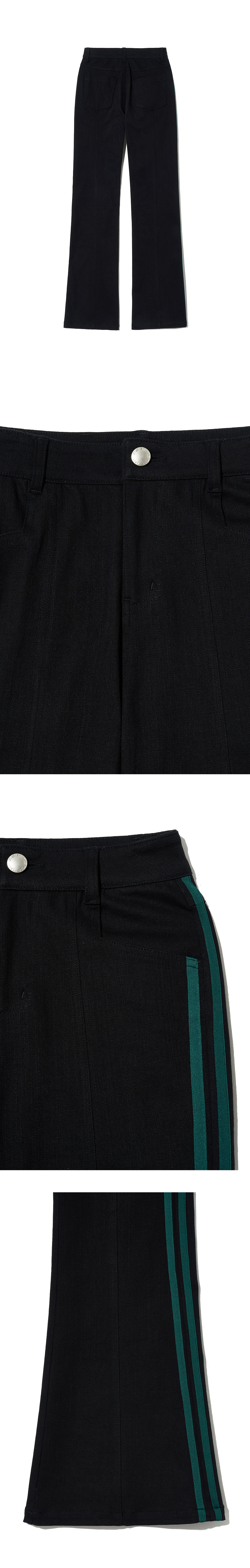 짙은 블랙컬러의 워싱 스판 데님 텍스처 탄탄한 면과 신축성이 좋은 스판 혼방 소재를 사용 YKK 지퍼 사용 밑단으로 갈수록 점차 넓어지는 트렌디한 부츠컷 실루엣 다리 라인 양옆의 입체감 있는 배색 트리밍으로 포인트를 주어 아이덴티티만의 유니크함을 볼 수 있는 제품