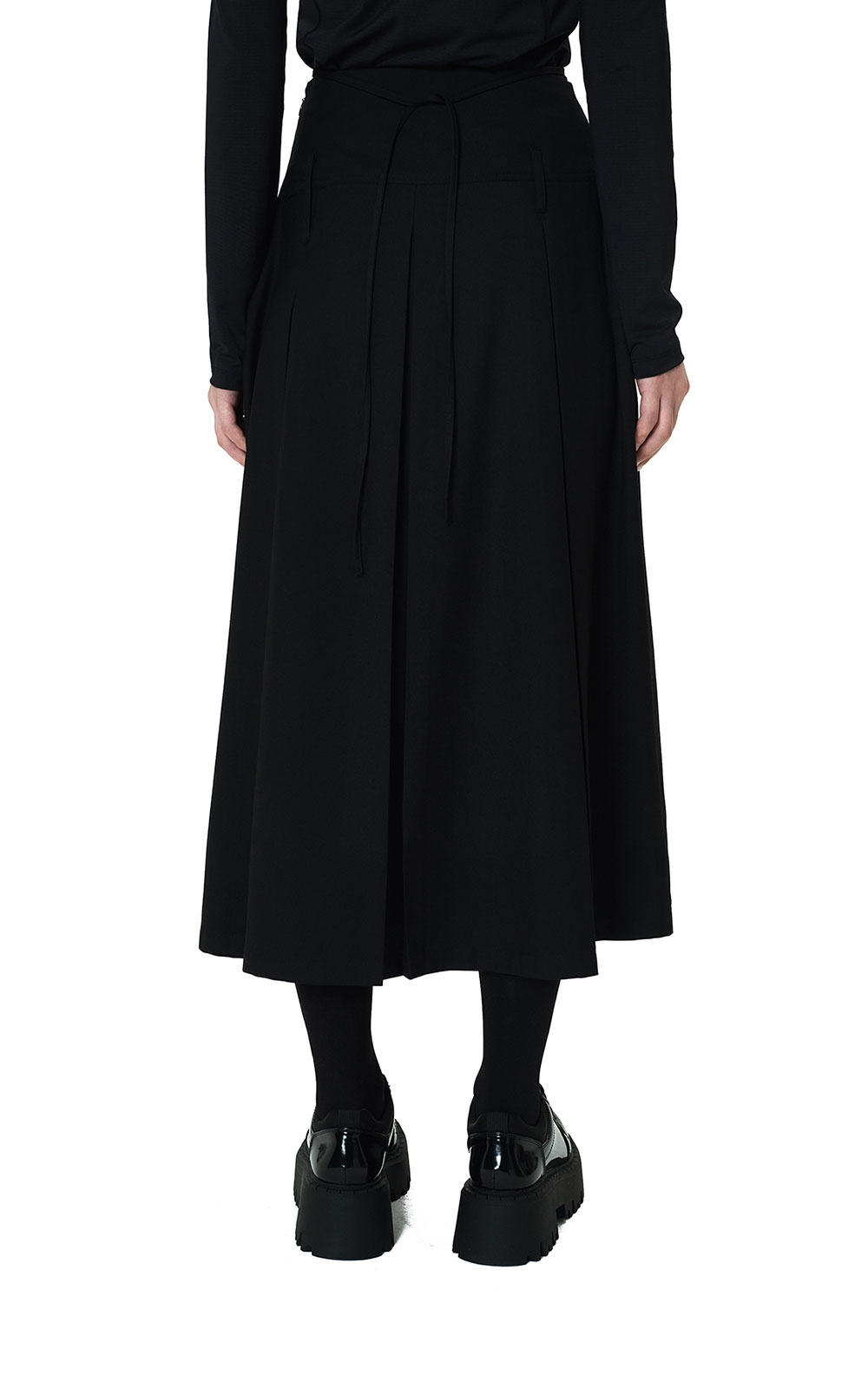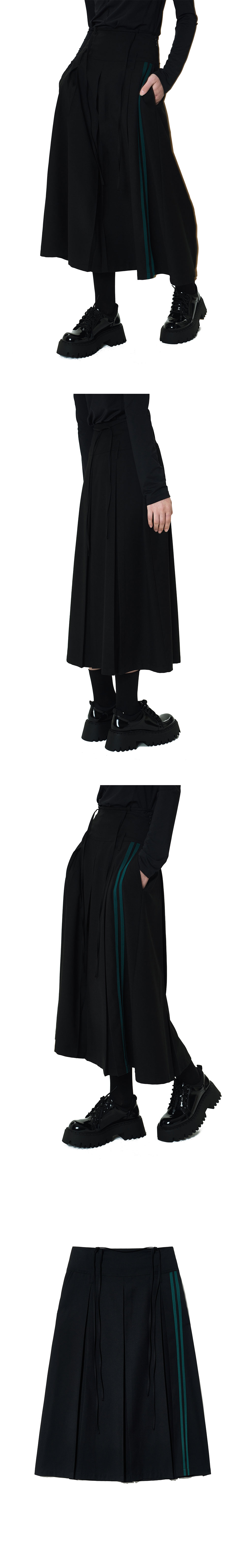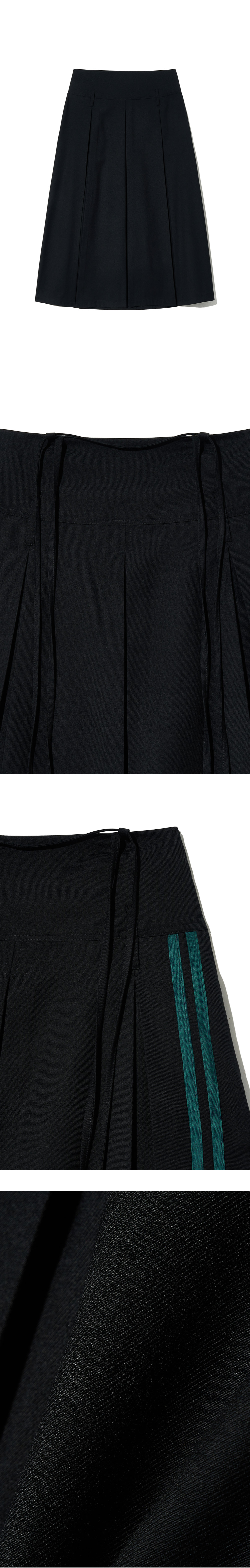 약간의 신축성 있는 스판 혼방 소재를 사용해 편안한 착용감 상단에 일정한 간격의 플리츠 디테일 밑단까지 자연스럽게 주름지는 실루엣을 연출한 롱스커트 입체감 있는 배색 트리밍으로 포인트를 주어 아이덴티티만의 유니크함을 볼 수 있는 제품 허리 라인에 스트랩 장식