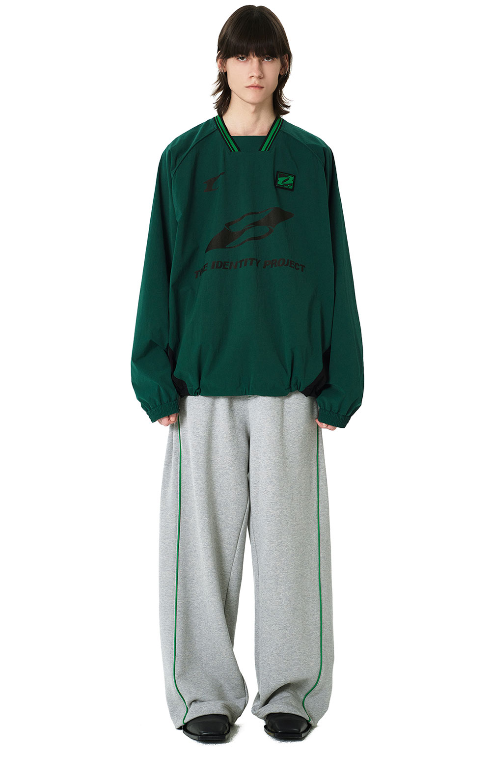 소재 나일론 96% 폴리우레탄 4% 리브드 폴리 100% 구김이 적어 데일리로 활용하기 좋은 나일론 저지 디자인 레글런 소매 파이핑 디테일 실리콘 나염 가슴 아이덴티티 고무 와펜 Overfit silhouette 컬러 배색 리브드 적용 밑단 스트링&스토퍼 트리코트 안감 적용되어 있어 부드러운 착용감 발수 가공되어 있지 않습니다.