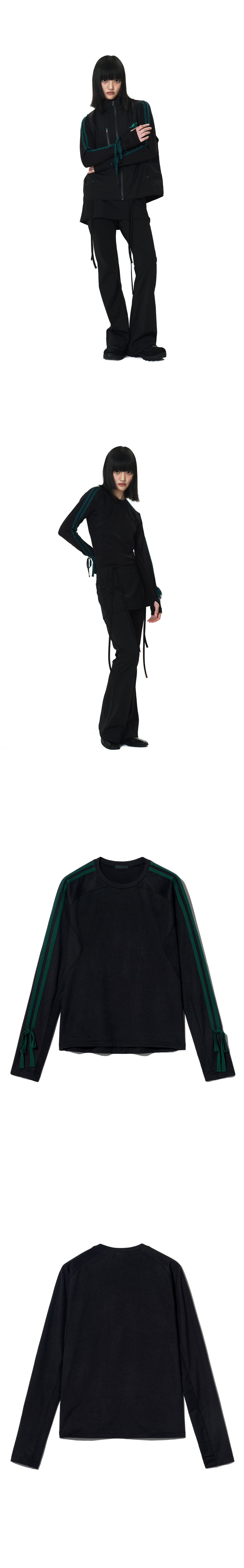 신축성 있는 스판 혼방 소재 편안한 착용감과 자연스럽게 핏 되는 실루엣 절개 디테일의 래글런 슬리브 부드럽고 탄탄한 저지 원단을 사용하여 우수한 착용감 양쪽 소매 초록 테잎 디테일