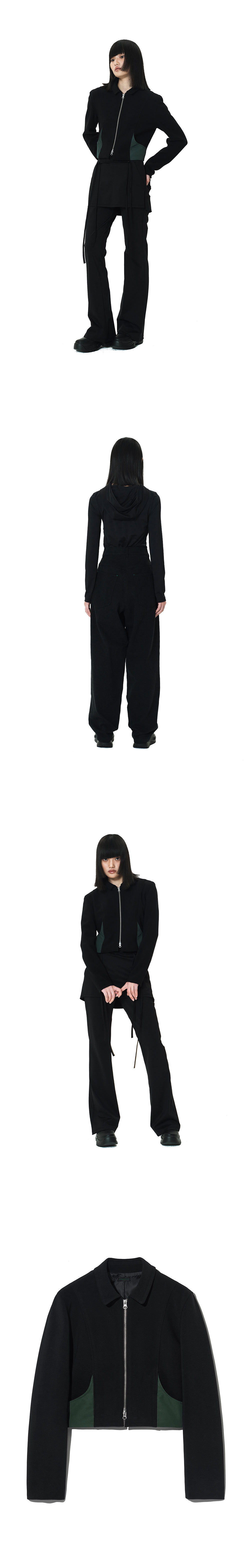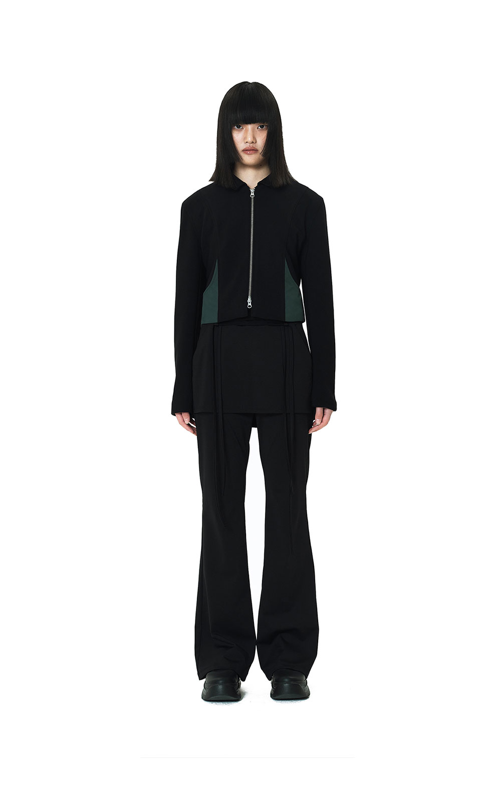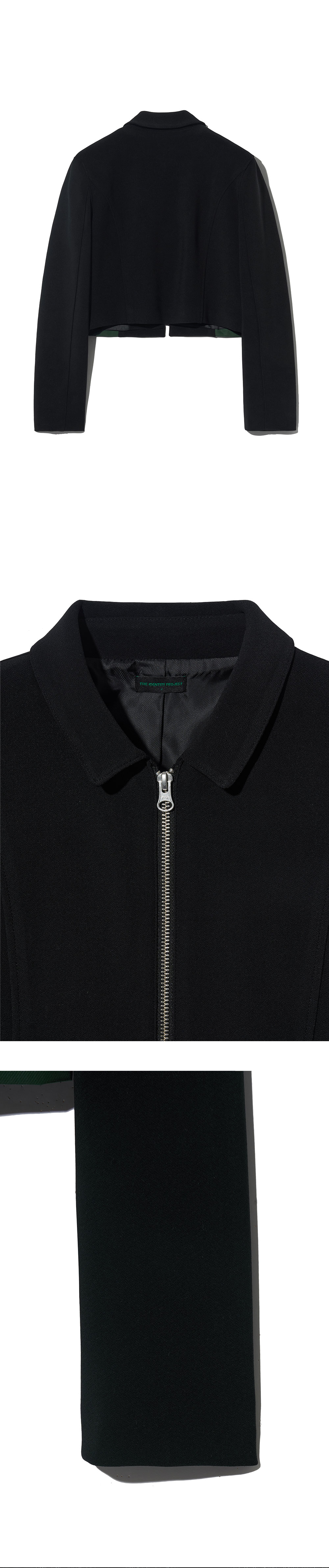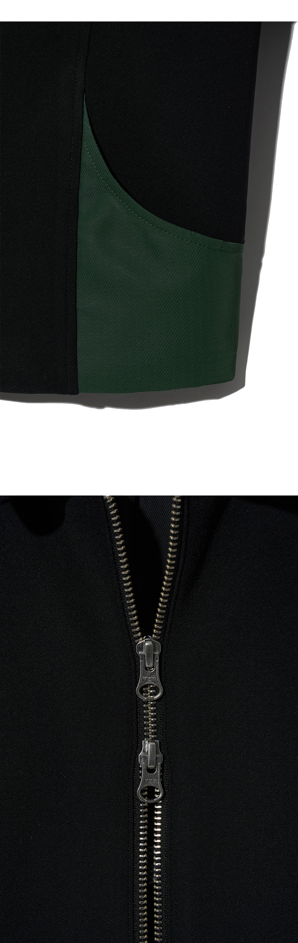 밀도 있고 신축성이 좋은 스판 혼방 소재 포인트 배색 디테일 경쾌한 기장과 슬림한 실루엣이 매력적인 상체 라인을 연출 편안한 착용감 캐주얼하면서도 여성스러운 분위기로 다양한 룩을 스타일리시하게 연출 YKK 투웨이 지퍼 클로징으로 한층 실용적으로 연출가능 아이덴티티 금속 심볼 장식