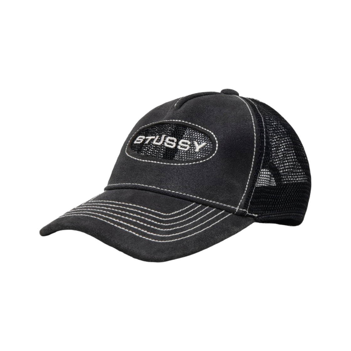 Stussy Low Pro Trucker Cut-Out Leather Snapback Black