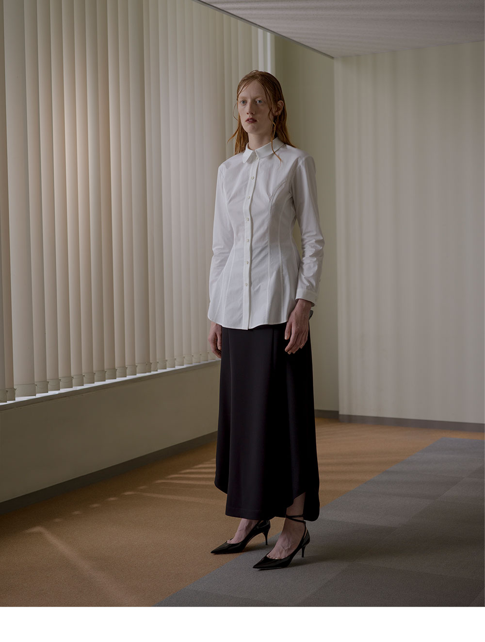 심플한 디자인으로 다양한 아이템과 매치하기 좋은 스커트입니다. 옆면의 벨트와 뒷면 슬릿으로 포인트를 주었으며, 매끄럽게 떨어지는 느낌의 소재로 더욱 감각적인 느낌을 주는 아이템입니다. *모델 신체 스펙 : 170cm / 착용 사이즈 : F