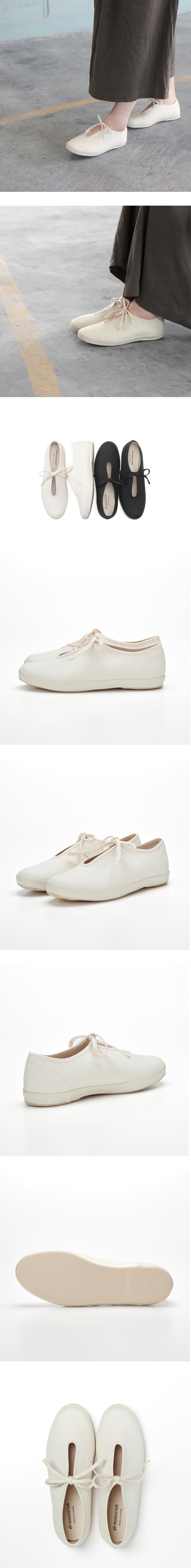 상단의 파이핑을 신발끈으로 한 심플한 스타일의 스니커즈입니다. - 우아하고 부드러운 형태에 리본 묶음 강조