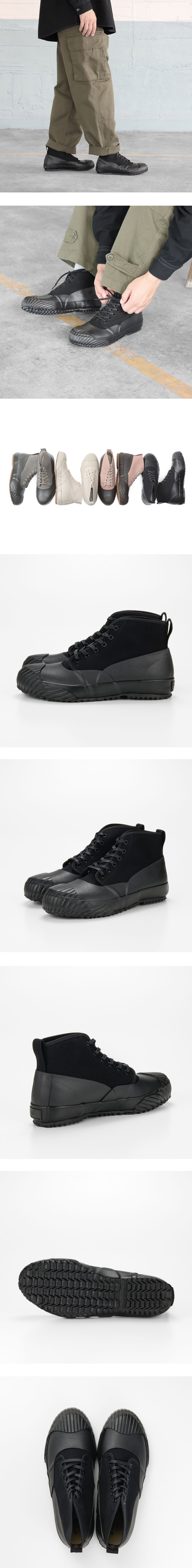 캔버스 소재의 어퍼에 고무를 덧붙인 전천후 모델입니다. - 맑은 날씨뿐만 아니라 비오는 날 등 발바닥의 상태가 나쁜 상황에서도 걱정없이 신을 수 있도록 설계 - 기존 모델에서 소재와 구조를 재고하여 더 많은 사람에게 맞게 재구성한 모델