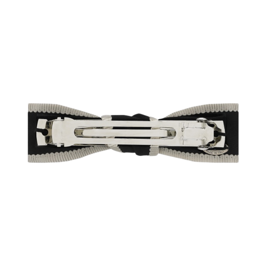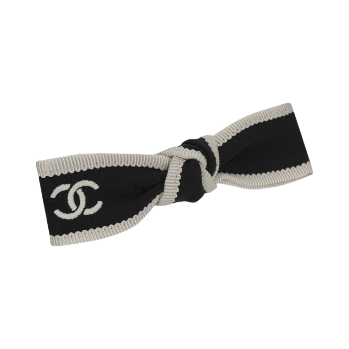 (W) Chanel Bow Barrette Silk Jacquard & Black Ecru