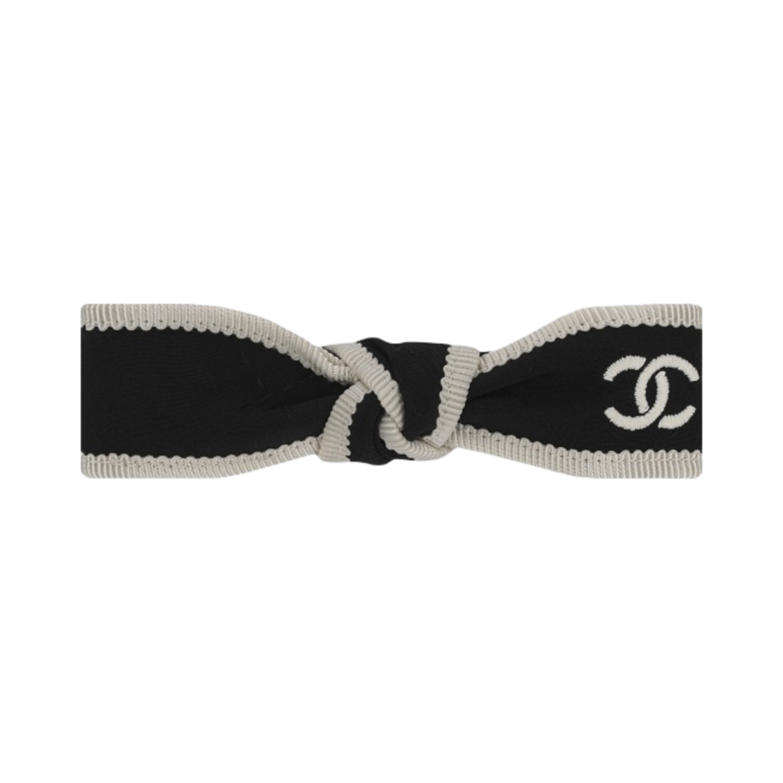(W) 샤넬 리본 모양 바레뜨 실크 자카드 & 블랙 에크루