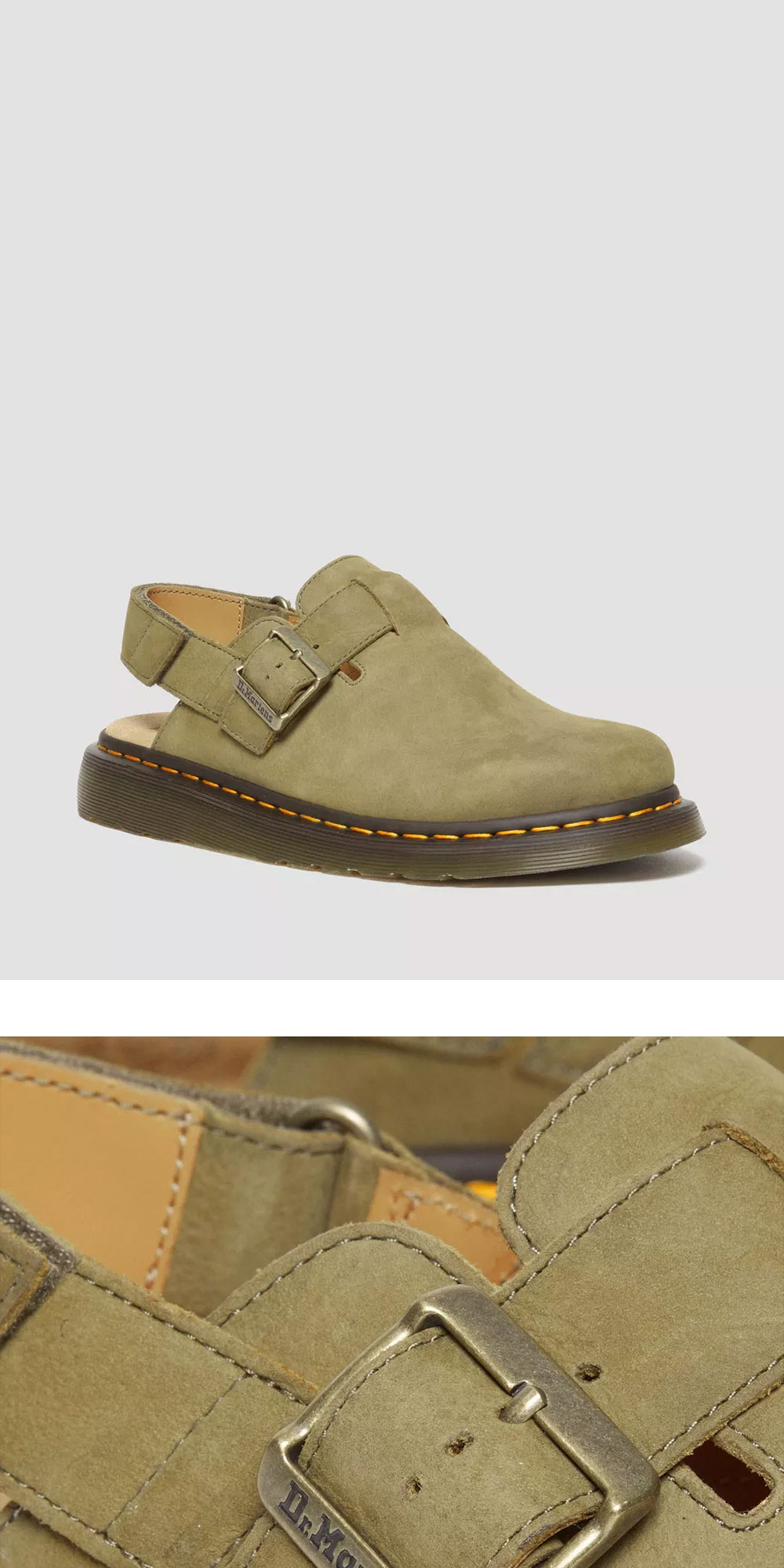 Dr. Martens Jorge II Tumbled Nubuck Leather Slingback Mules Muted Olive