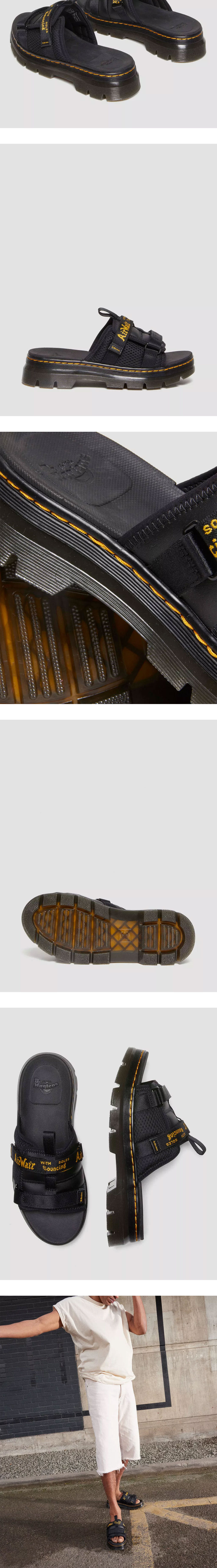닥터마틴 에이스 로고 마일드 레더 스트랩 플랫폼 슬라이드 블랙