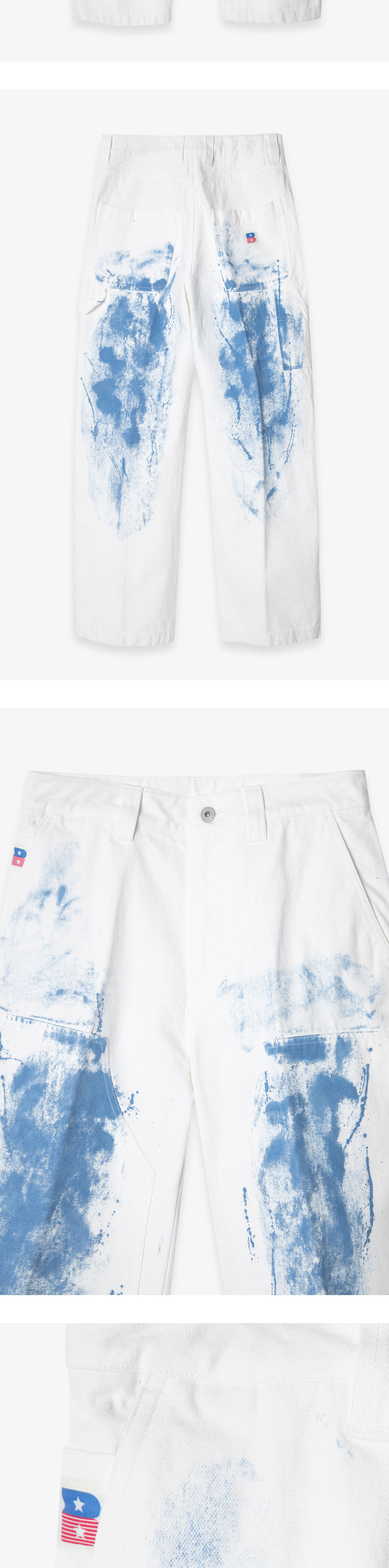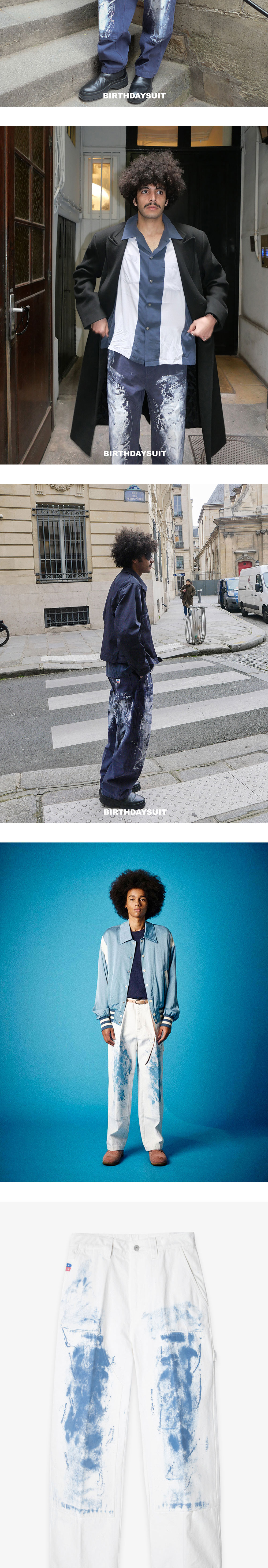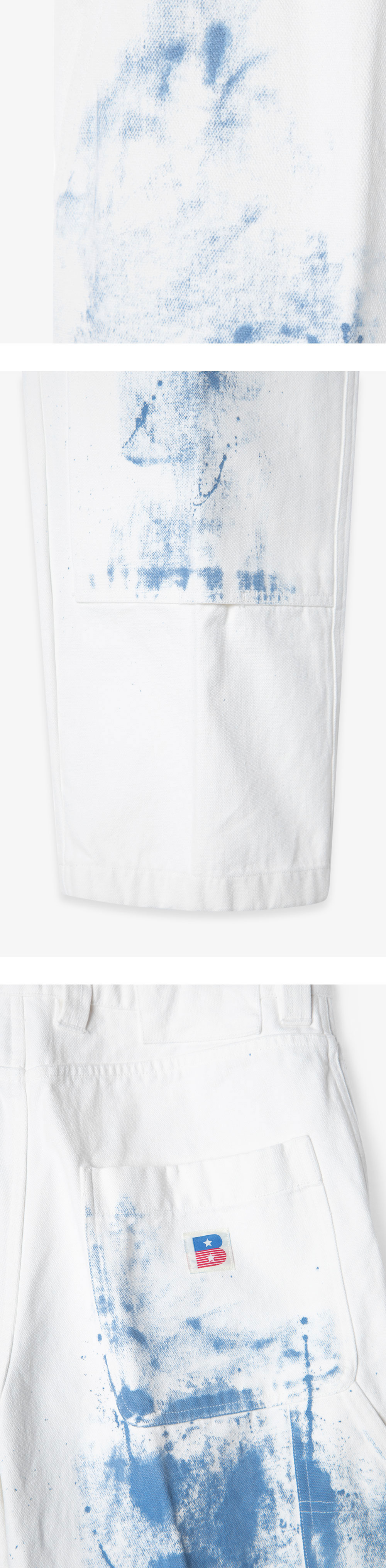 PAINTED CARPENTER PANTS는 탄탄한 내구성을 느낄 수 있는 코튼 원단으로 제작된 팬츠입니다. 목수나 도장공이 작업을 위해 착용하였던 워크 팬츠를 모티브로 공구 포켓 혹은 망치를 걸 수 있는 루프 디테일을 담아냈습니다. 전후면 존재하는 페인팅과 벌스데이수트의 시그니처 로고인 B 로고를 삽입하여 포인트를 주었으며, 와이드 핏 실루엣으로 착용됩니다. *상세 이미지 내 모델이 착용한 상품의 경우, 동일한 상품의 네이비 컬러인 점 참고 부탁드립니다.