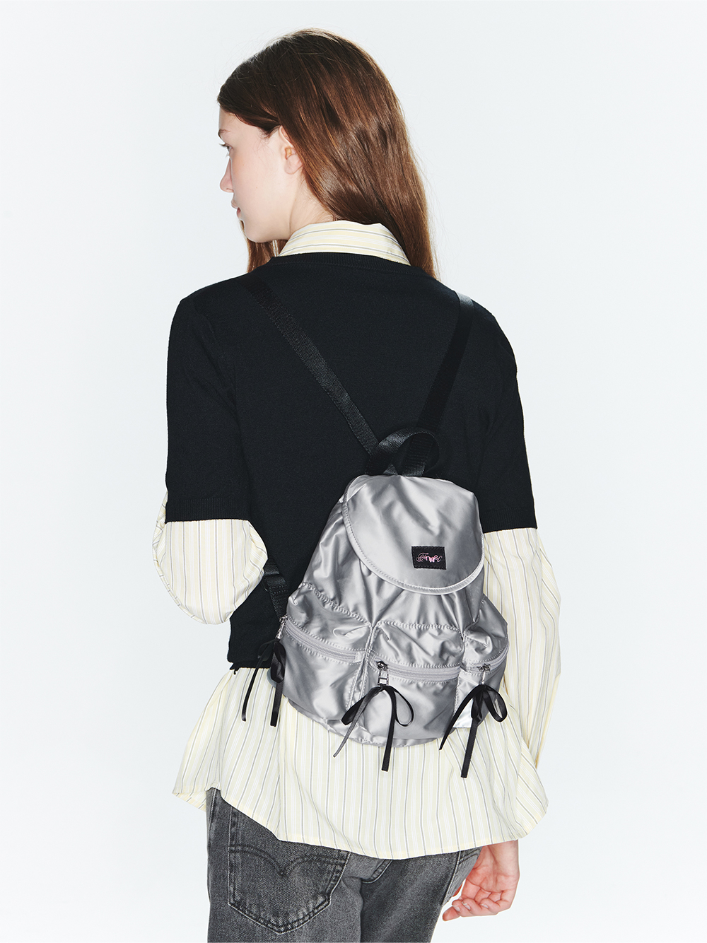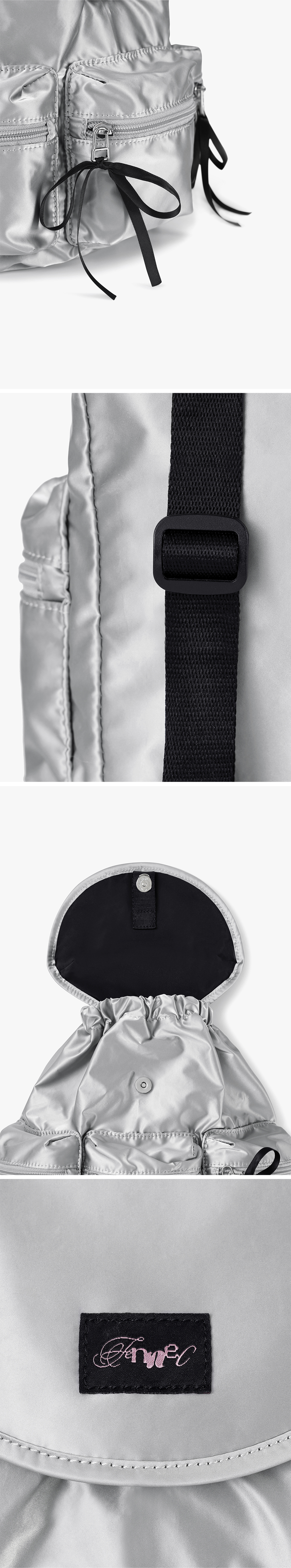 * *해당 제품은 7월 생산분부터 원단이 변경되었습니다. 실 사용감 개선을 위해 기존 소재에서 스크래치에 강한 폴리우레탄 소재로 변경되어 이 점 주문 시 참고 부탁드립니다. * 리본 장식이 달린 3개의 지퍼 포켓이 포인트인 미니 백팩 * 생활 방수가 가능한 탄탄한 폴리우레탄 소재 * 밴드형 입구와 자석 스냅 잠금으로 수납이 편리한 아이템