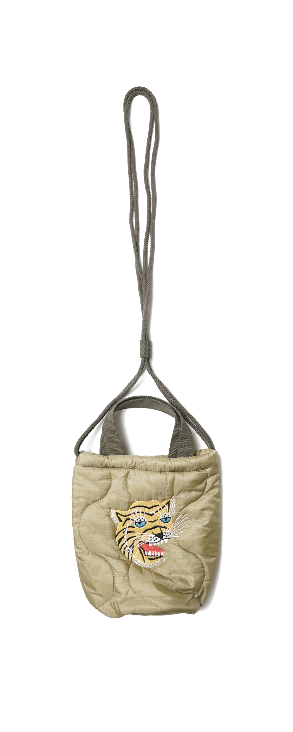 Houston Japan 6844 EMB Quilting Effect Bag (Tiger) - Olive Drab 나일론 립 소재로 제작된 2way 사양의 휴대용 백입니다. 볼륨감이 있는 퀼트의 전면에는 빈티지스로운 분위기의 타이거 자수가 후면부에는 한자로 복(福) 자수가 디자인 되어 있습니다.