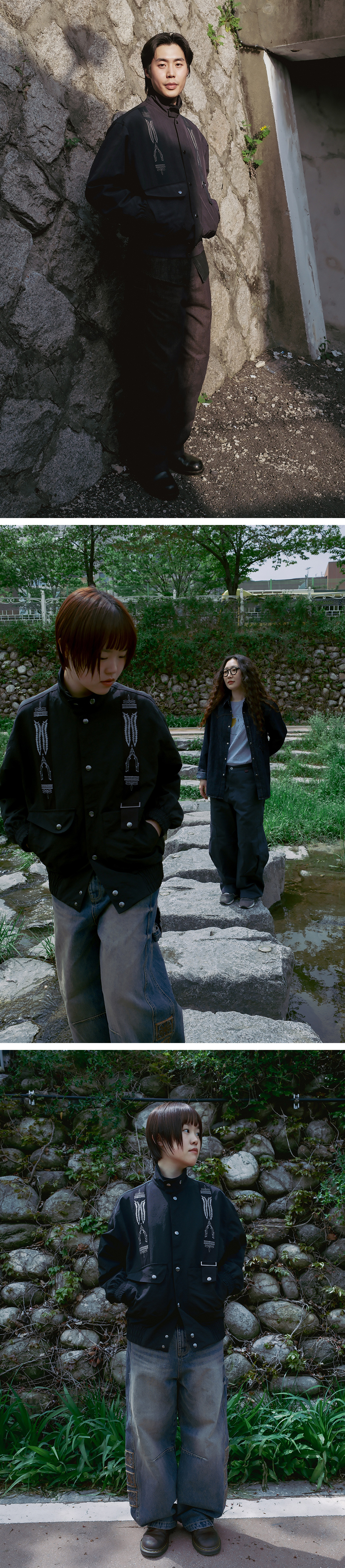 Product Info. - 가벼운 나일론 소재를 사용하여 간절기 높은 활용도의 워크 자켓 - 전면 빈티지 무드의 스티치 자수 웨빙 스트랩 디자인 - 전면부, 네크라인 YKK 스냅 버튼 디테일로 쉽게 다양한 방식으로 연출 가능 - 스트랩을 활용한 감각적인 비대칭 포켓 클로저 구조, 이중 터널 포켓 구조 - 키 링, 카라비너 등의 아이템 커넥터 역할의 금속 링크 포인트 Fabric. - Shell : Nylon 100% - Lining : Polyester 100% Size. (cm) 00 - 총장 68 / 어깨 52 / 가슴 60 / 소매 58 01 - 총장 70 / 어깨 54 / 가슴 62 / 소매 60 Caring. - Dry Cleaning Only ※주의사항※ - 스튜디오 촬영 환경 및 모니터 해상도에 따라 제품 이미지와 실제 제품 간의 컬러 및 원단감의 차이가 있을 수 있습니다. Made In Korea.