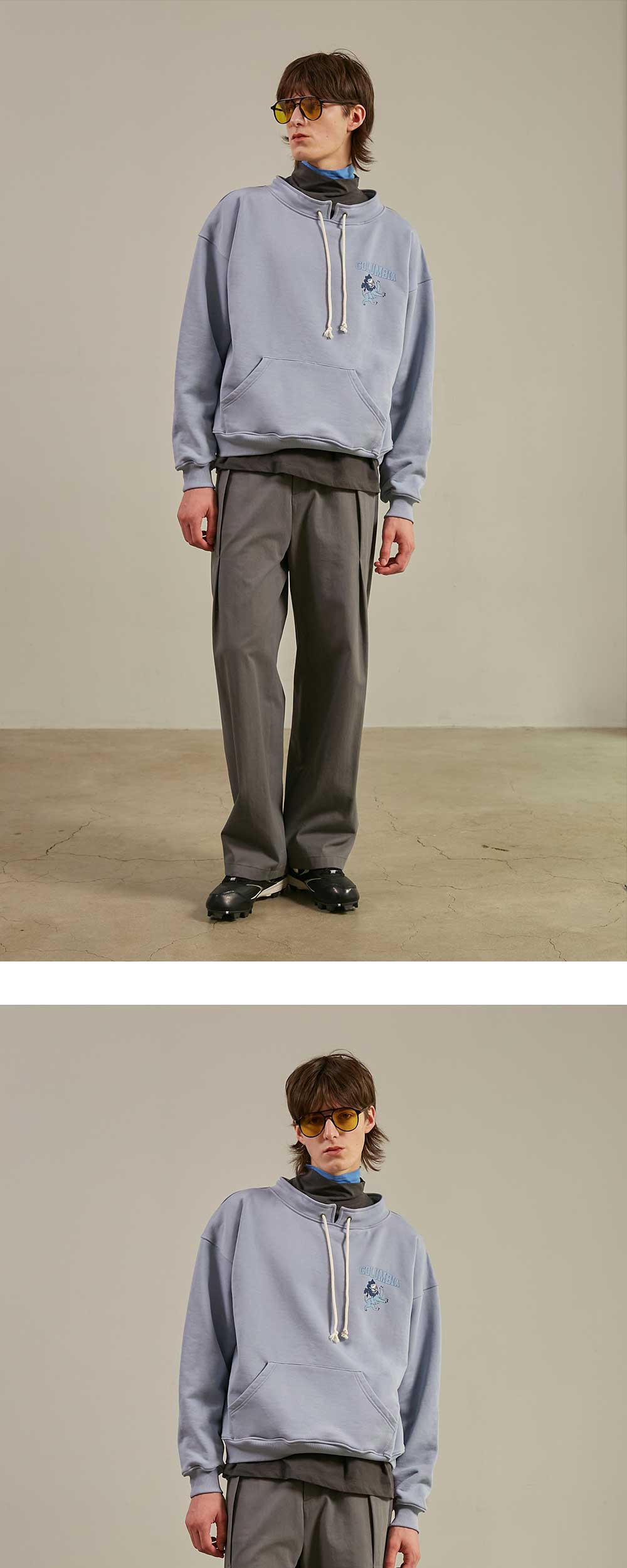 엔 아카이브 뉴 아이비 리그 하프 넥 빈티지 스웨트셔츠 틸 블루
