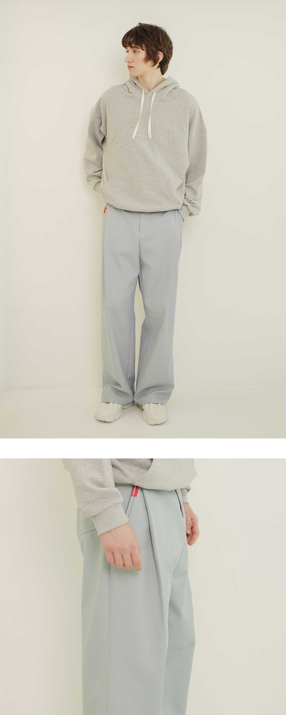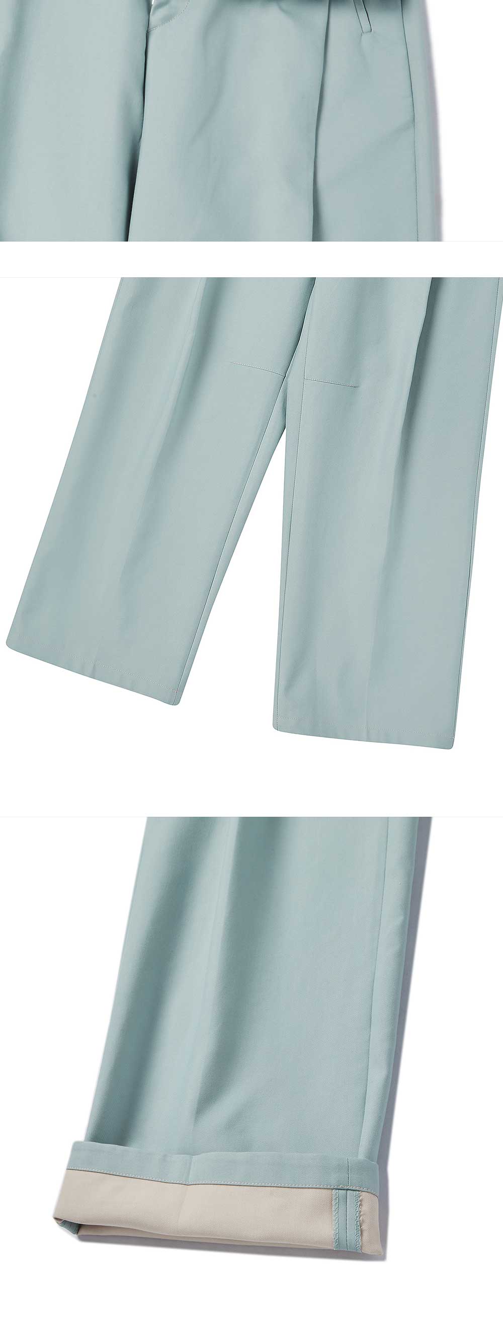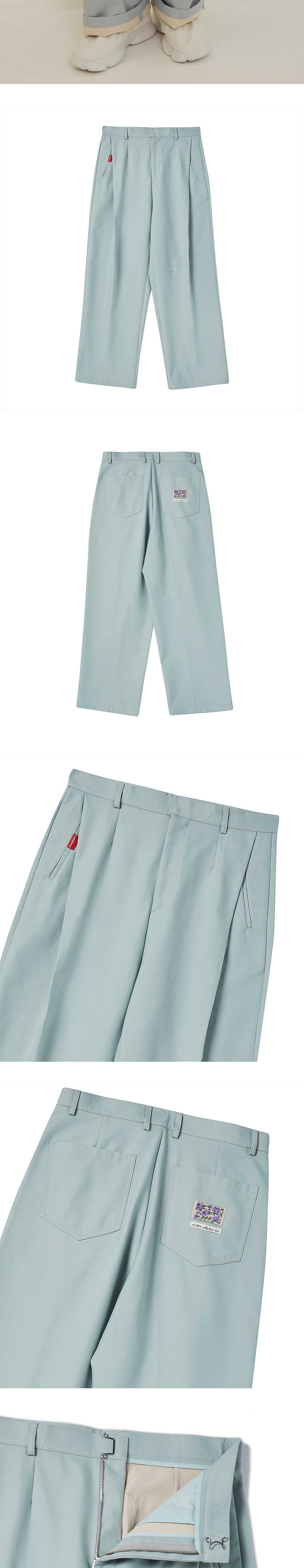 ㆍ양쪽 컬러가 다른 더블 페이스 원단을 사용하여 롤업시 새로운 무드 연출 ㆍ전면 깊은 원턱 디테일과 세미 와이드한 핏으로 클래식하면서 캐주얼한 무드 연출 ㆍ무릎쪽 다트 디테일을 통한 입체적 실루엣 ㆍ빈티지 무드의 플라워 직조 라벨과 띠 라벨 디테일 ㆍ포켓 레드 포인트 라벨 디테일 ㆍ배색 스티치 디테일 ㆍ블랙컬러의 경우 더블 페이스 페브릭 클래식 더블 블레이저 자켓과 셋업착용 가능 ㆍ남녀공용 착용 ㆍ여성분들은 S사이즈 착용 권장