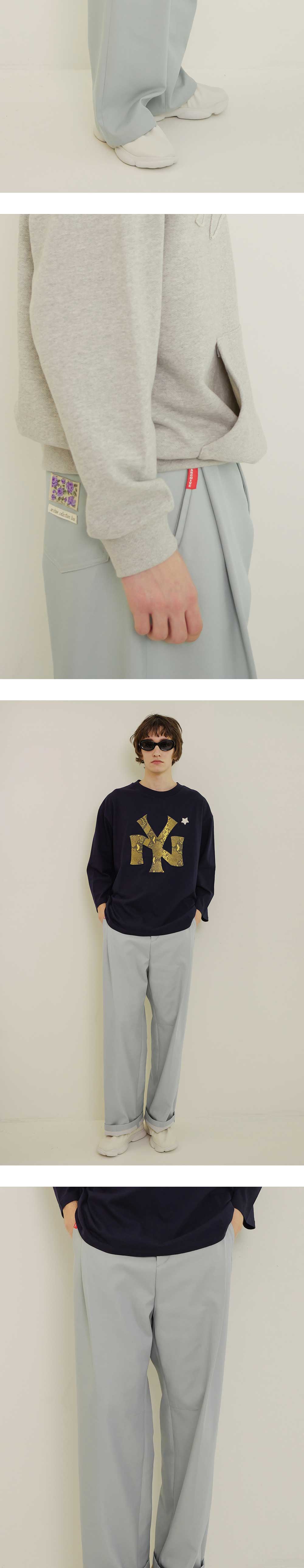 엔 아카이브 아카이브 더블 페이스 페브릭 스티치 디테일 코튼 팬츠 스카이 블루