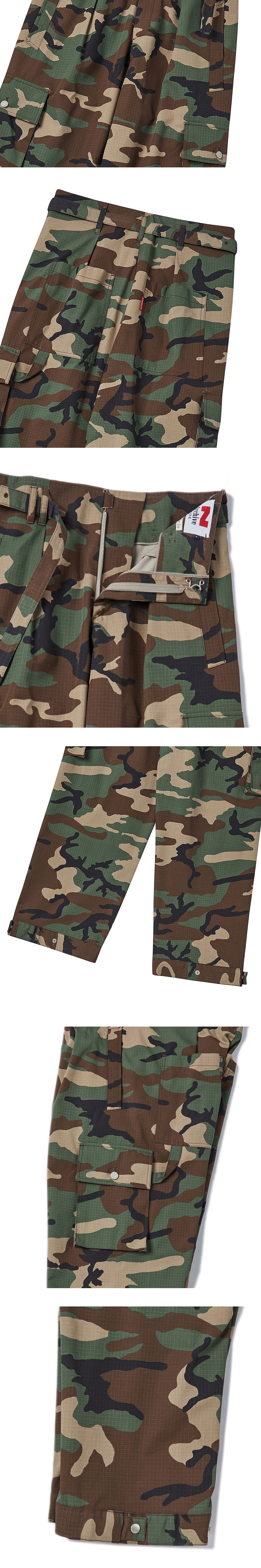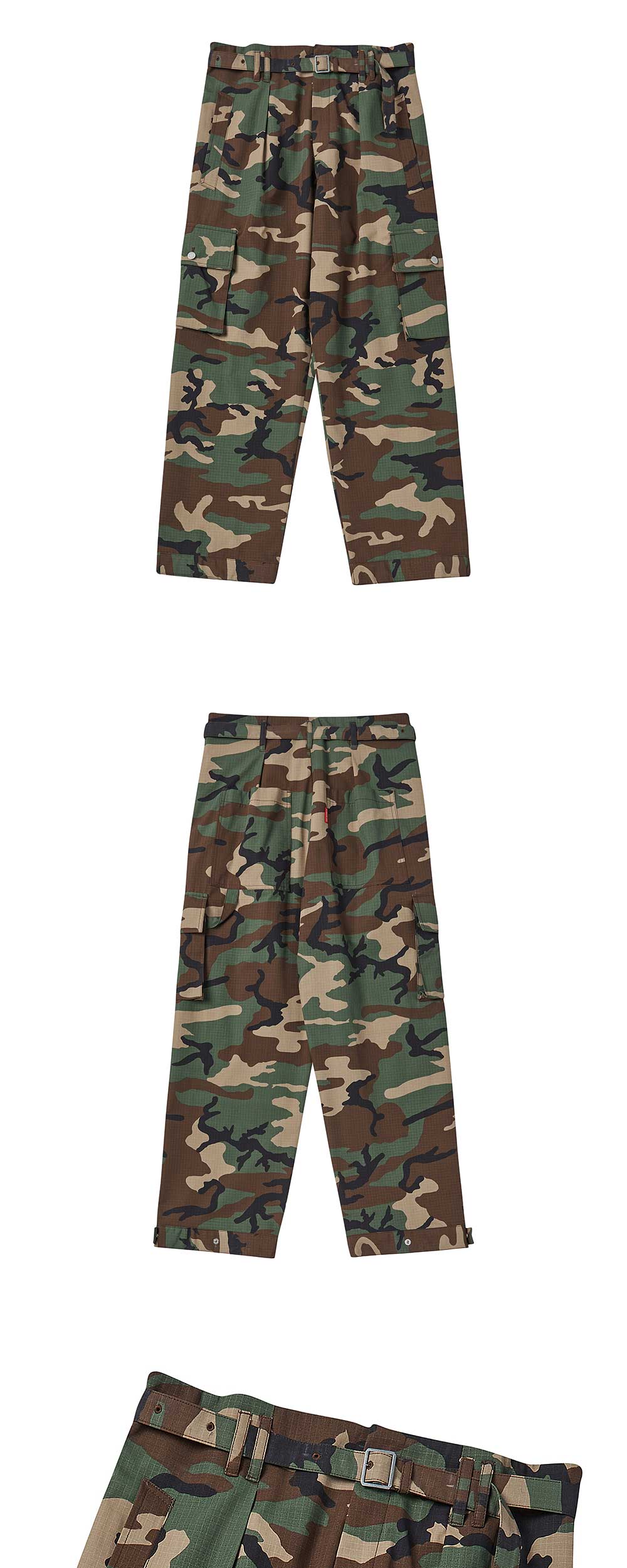 ㆍ립스탑 조직으로 된 코튼 혼방 원사로 제작 ㆍ오리지널 카모플라주 패턴으로 제작되어 밀리터리 무드 연출 ㆍ전면 원턱 디테일로 세미 와이드한 핏 ㆍ탈부착이 가능한 벨트 디테일을 통해 허리 사이즈를 다양하게 조절 가능 ㆍ아웃 포켓 플랩 빈티지 가공된 유니온 메이드 켄톤 디테일 ㆍ밑단을 조절할 수 있는 YKK 스냅 비조 디테일 ㆍ옆선과 허리 절개 없는 입체 패턴으로 제작 ㆍ뒷판 포켓에 N-ARCHIVE 포인트라벨 디테일 ㆍ왼쪽 사이드 해머 스트링 디테일 ㆍ남녀공용 착용 ㆍ여성분들은 S사이즈 착용 권장