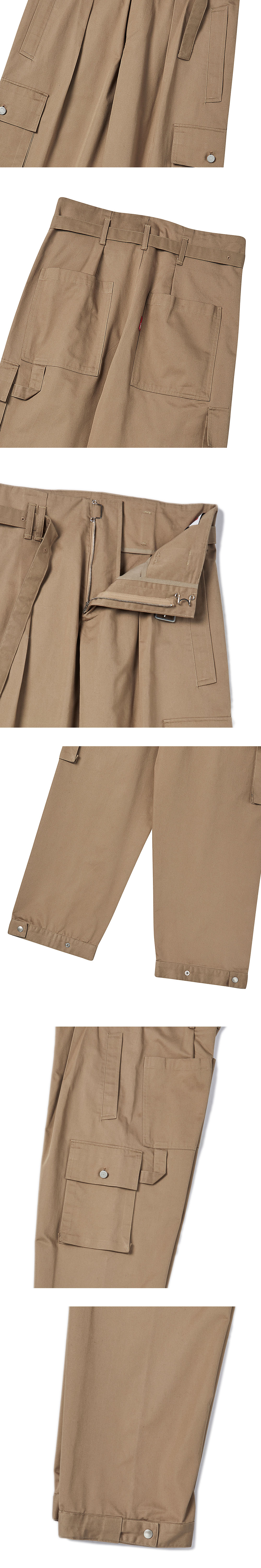 ㆍ30수 고밀도 코튼 원사로 제작 ㆍ전면 원턱 디테일로 세미 와이드한 핏 ㆍ탈부착이 가능한 벨트 디테일을 통해 허리 사이즈를 다양하게 조절 가능 ㆍ아웃 포켓 플랩 빈티지 가공된 유니온 메이드 켄톤 디테일 ㆍ밑단을 조절할 수 있는 YKK 스냅 비조 디테일 ㆍ옆선과 허리 절개 없는 입체 패턴으로 제작 ㆍ뒷판 포켓에 N-ARCHIVE 포인트라벨 디테일 ㆍ왼쪽 사이드 해머 스트링 디테일 ㆍ남녀공용 착용 ㆍ여성분들은 S사이즈 착용 권장