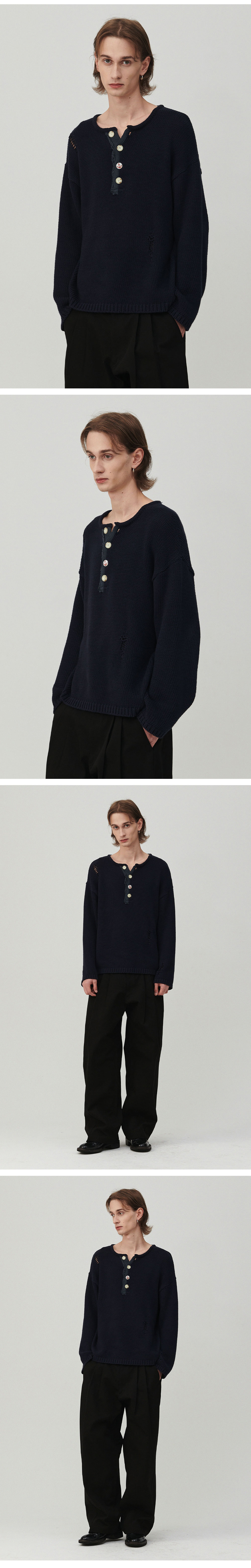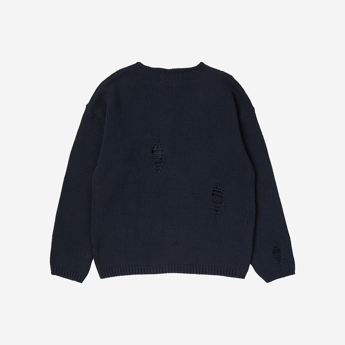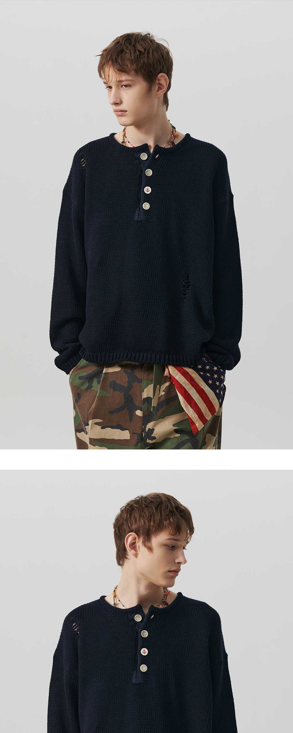 엔 아카이브 아카이브 헤비 웨이트 코튼 데미지 디테일 헨리넥 니트 네이비