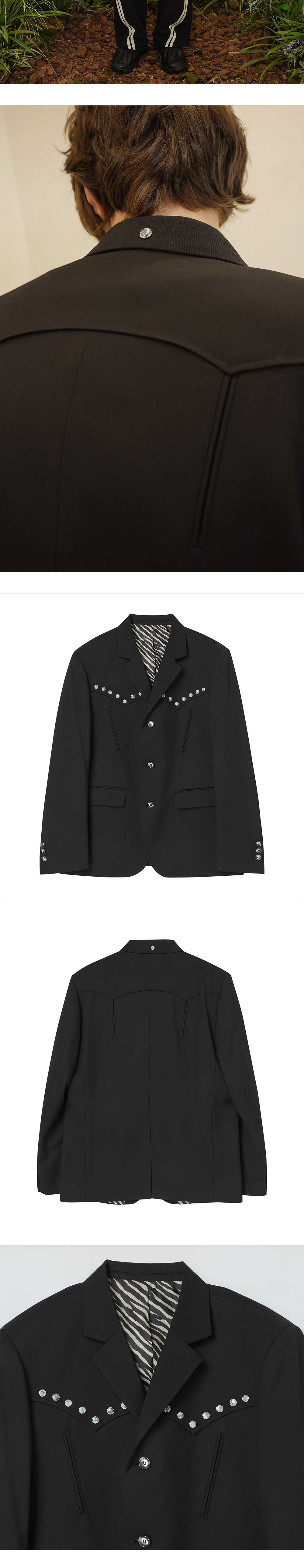 ㆍ'THE NEW WILD' 아카이브 상품 ㆍ웨스턴 무드의 디테일을 테일러링 자켓에 더한 감각적인 디자인 ㆍ세미 오버핏으로 자연스러운 실루엣 연출 ㆍ오리지널 테일러링으로 뛰어난 퀄리티와 내구성 ㆍ클래식한 무드의 3버튼 자켓 ㆍ웨스턴 자켓 특유의 절개 디테일 ㆍ전면과 카라 뒷면의 스터드 디테일 ㆍ전면과 후면 입술포켓과 요크 장식 디테일 ㆍ카라 안쪽 배색원단 디테일 ㆍ지브라 패턴의 안감 디테일 ㆍ소매 리얼버튼 디테일 ㆍ남녀공용 착용 ㆍ여성분들은 M사이즈 착용 권장